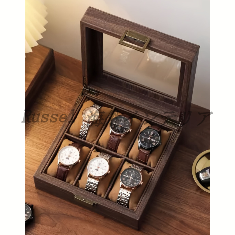 大切な時計を6本収納でき、インテリアとしても映えるエレガントなデザインが魅力です。