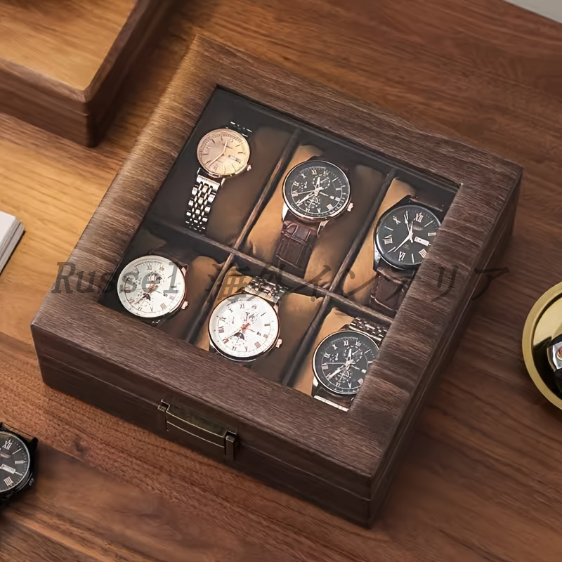 腕時計 収納ケース 6本収納 6スロット 時計ボックス ラグジュアリー 木目調レザー調 ウォッチ ボックス 収納 おしゃれ インテリア