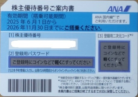 ANAの株主優待券です。