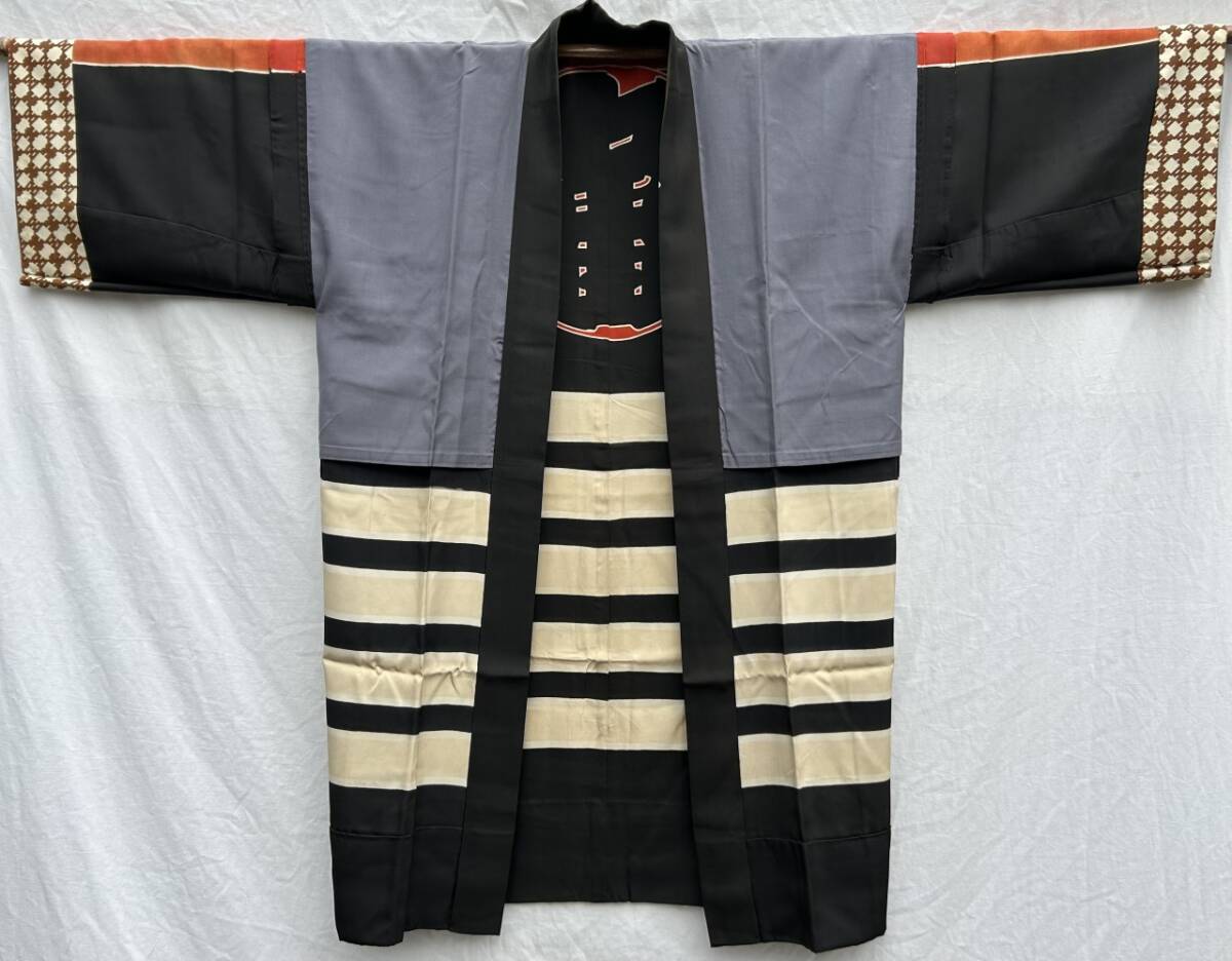 説明:あまり出てこない江戸火消しもの。背中に七番と入っております。絹素材、手差し。小頭の文字が襟に入っております。腰柄ガッツリ入っているので非常に雰囲気のある一枚。お探しの方は是非この機会に!!