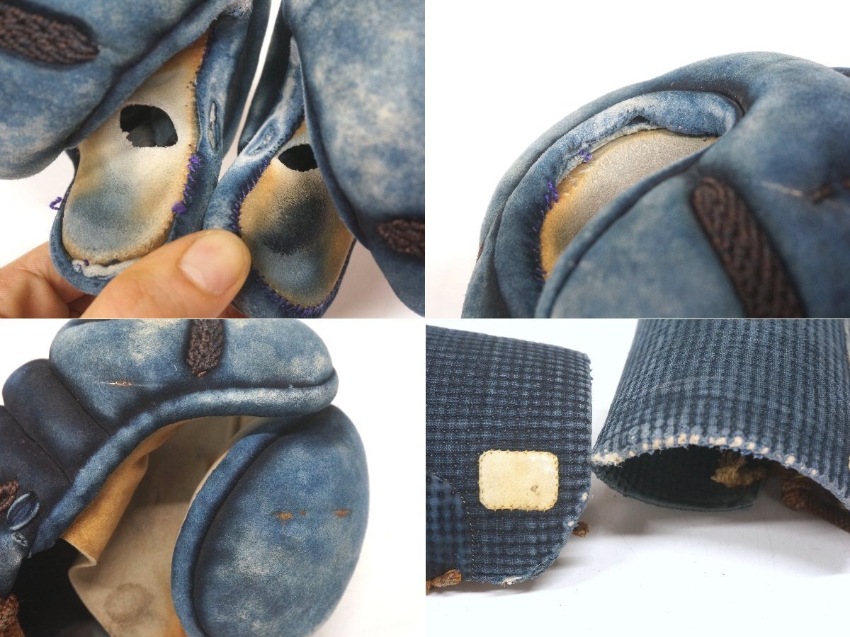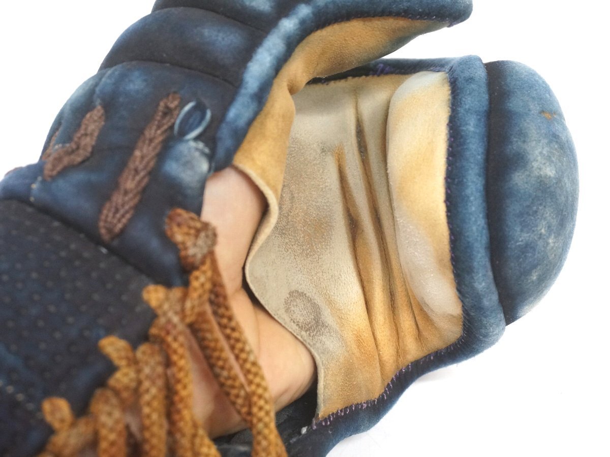 小手の手の内には両側とも親指に穴があり、縁の革にも擦り切れがあります。