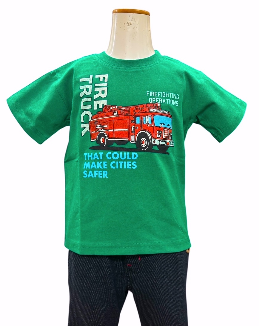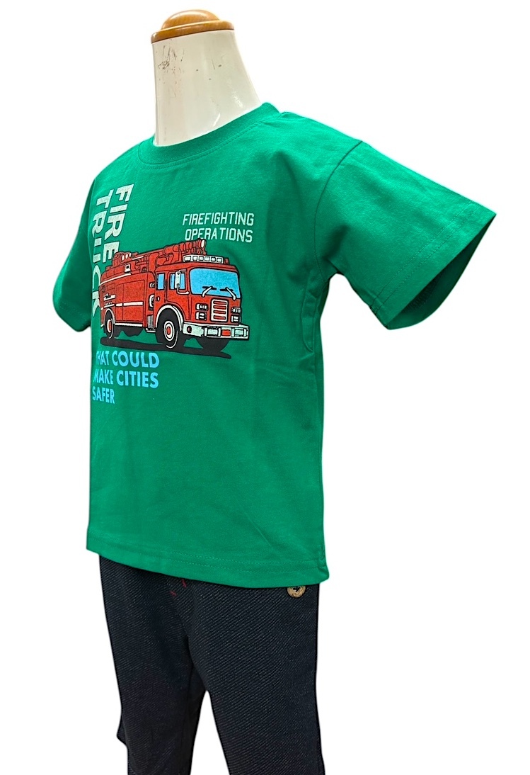 即決 新品タグ付 Crescent クレセント★人気の働く車シリーズ★消防車柄 プリント★半袖Tシャツ★子供 110cm 5-6才 ¥1430