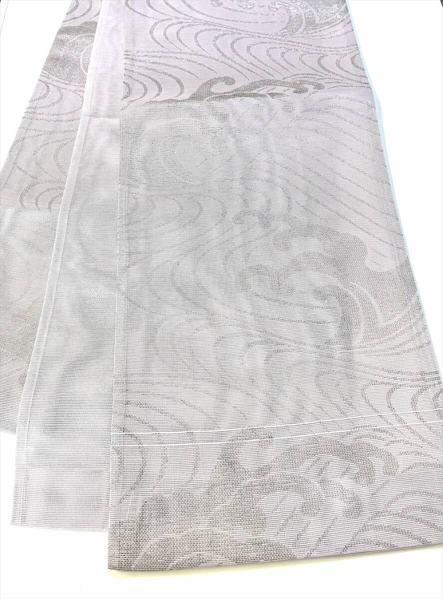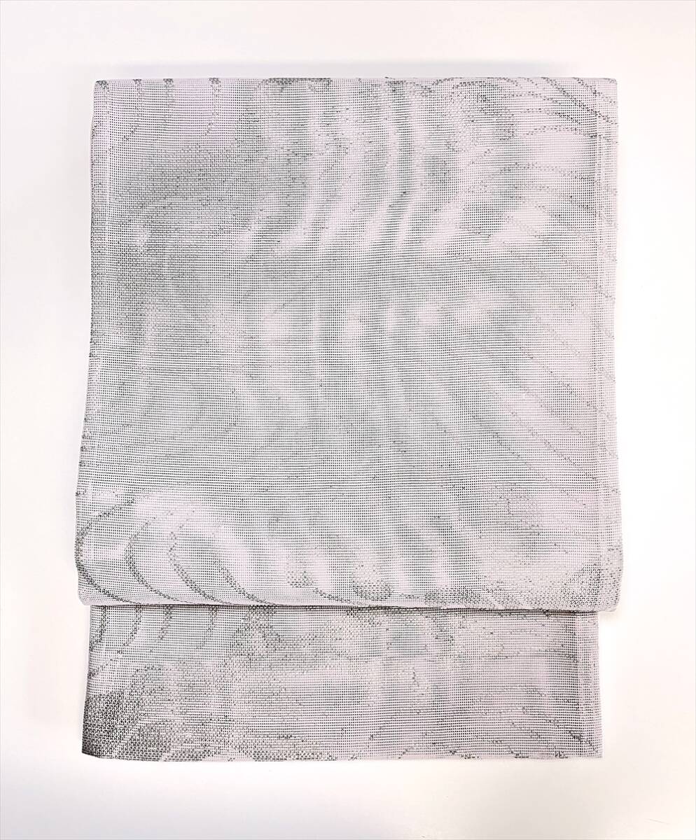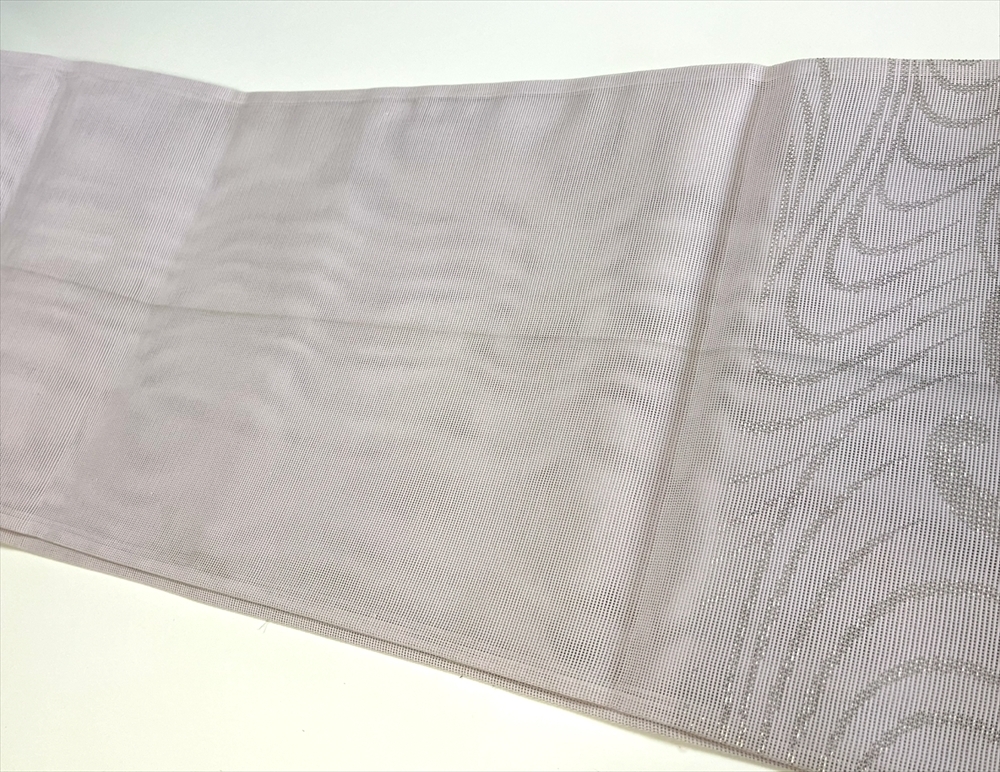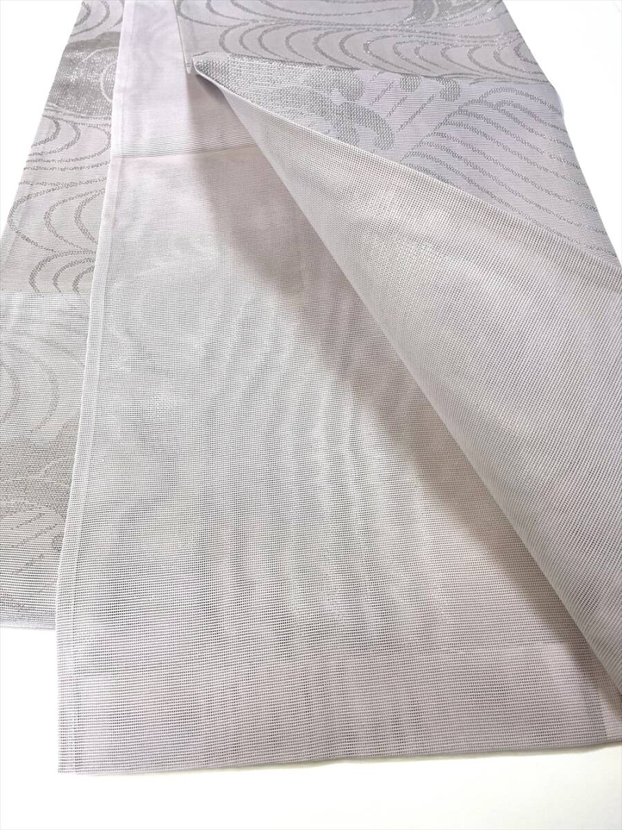 リサイクル帯 袋帯 薄灰紫 波 ポリエステル