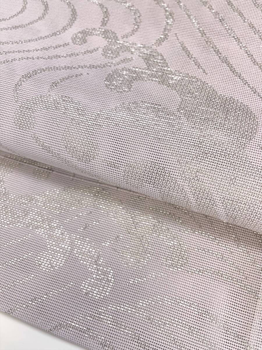 花とら●リサイクル帯 袋帯 薄灰紫 波 ポリエステル    250506