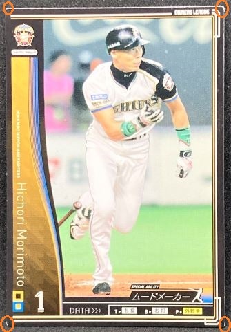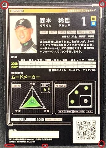 オークションサイトで購入した時点で、カード面に傷(画像の赤丸印)がございました。光の加減でわかりにくいかもしれませんが、特に、表面の右上角と裏面の真ん中の下、右上角の傷は目立ちます。 それ以外は、比較的綺麗なほうだと思います(あくまで主観です)。 自宅保存しておりましたので、その辺をご考慮していただきたく思います。 |