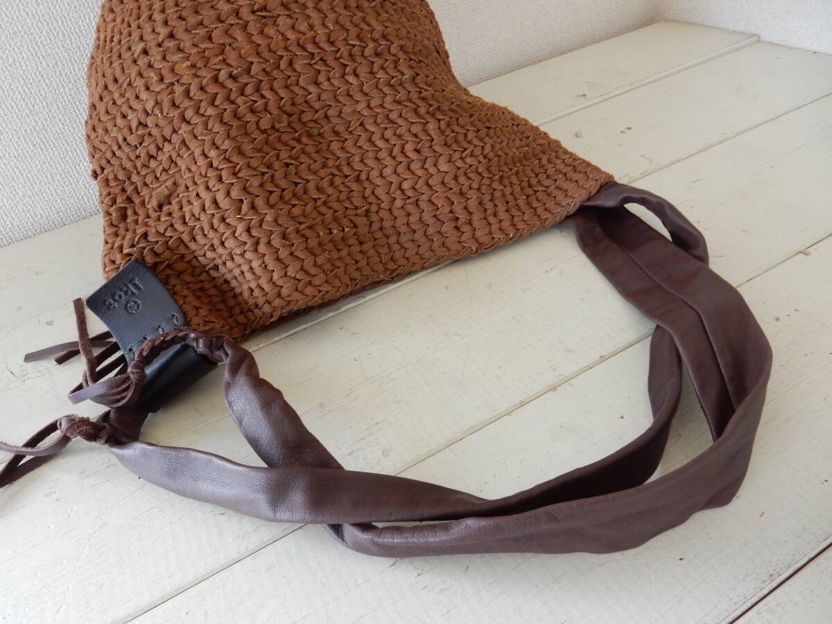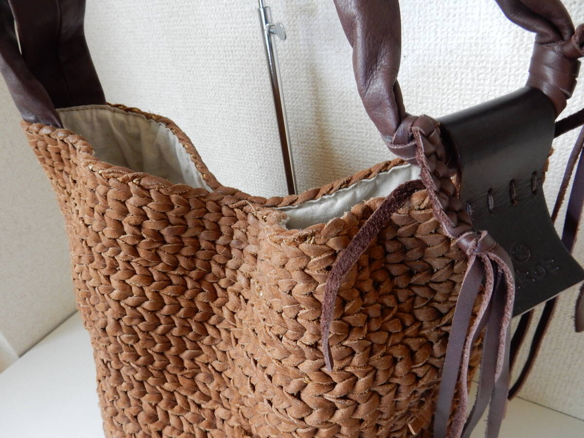 本革☆ikot(イコット)☆A4対応☆編み込みレザー☆ショルダーバッグ ブラウン