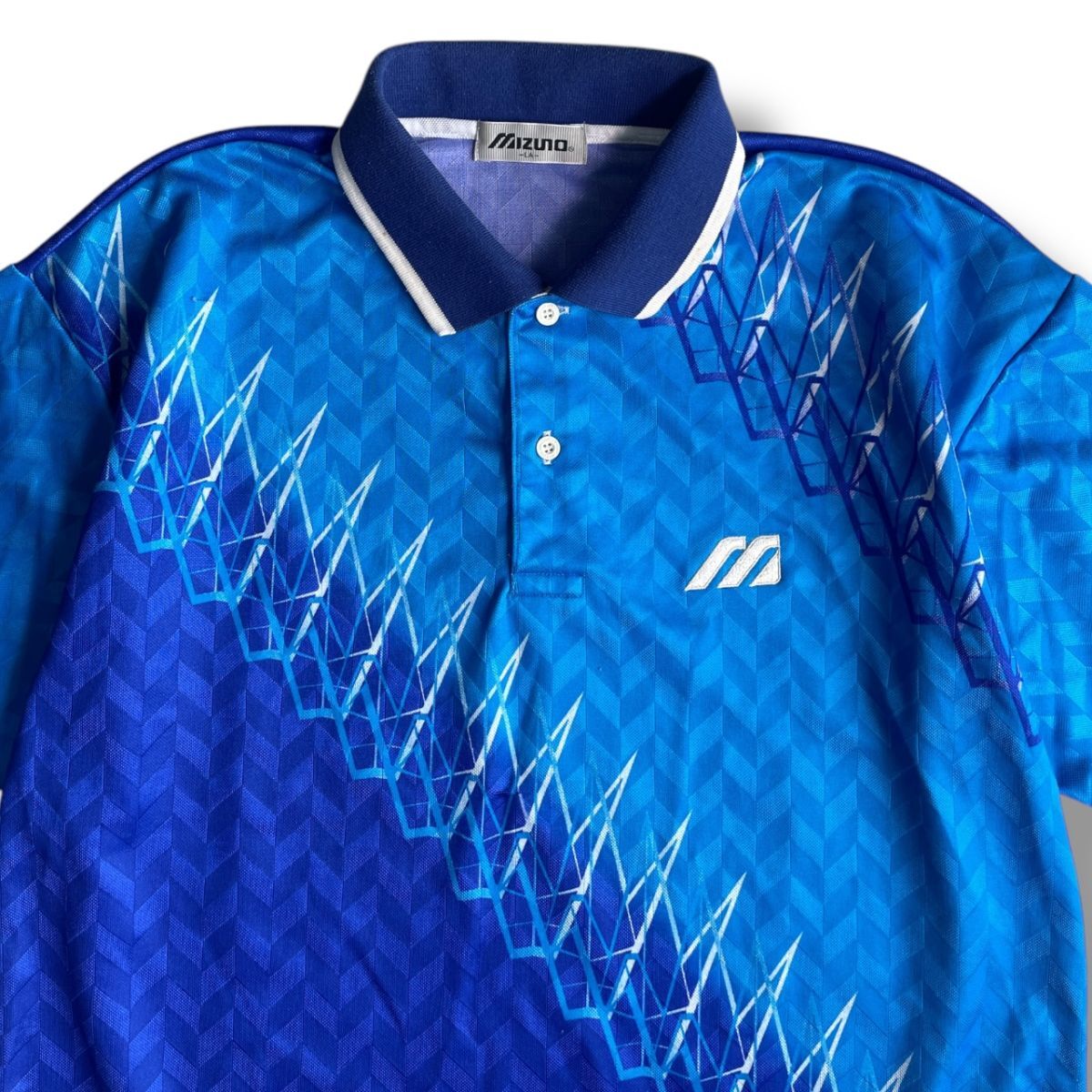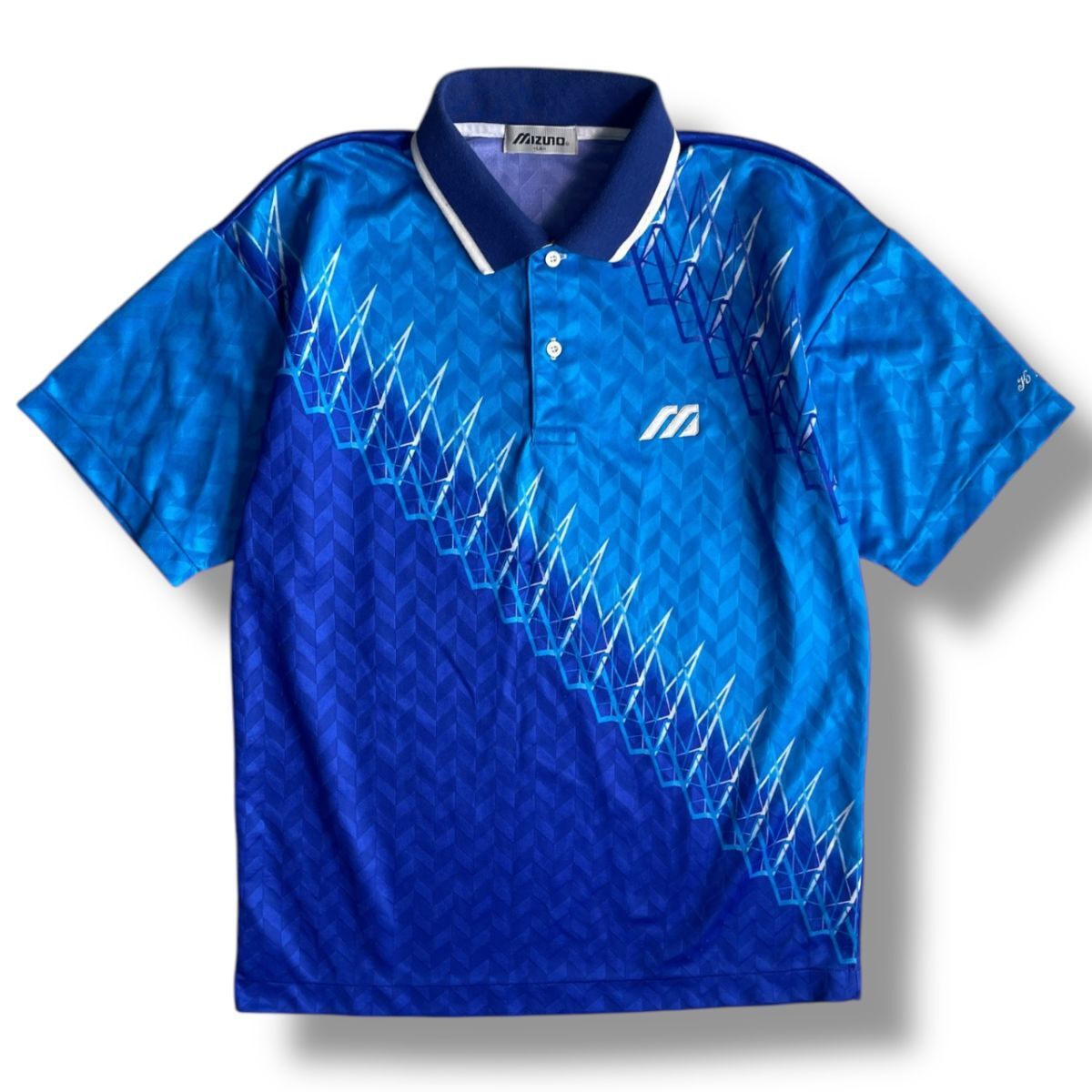 希少★ MIZUNO ミズノ 桐朋学園 ユニフォーム ゲームシャツ メンズ Lサイズ 青 半袖 ポロシャツ テニス バドミントン 日本製 スポーツ