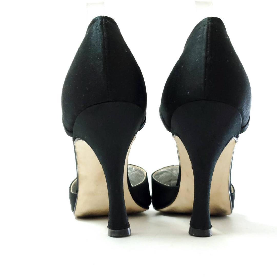 サテン素材で上品な光沢感があり、足元を華やかに演出。ポインテッドトゥで足元を美しく見せ、スタイルアップ効果抜群。