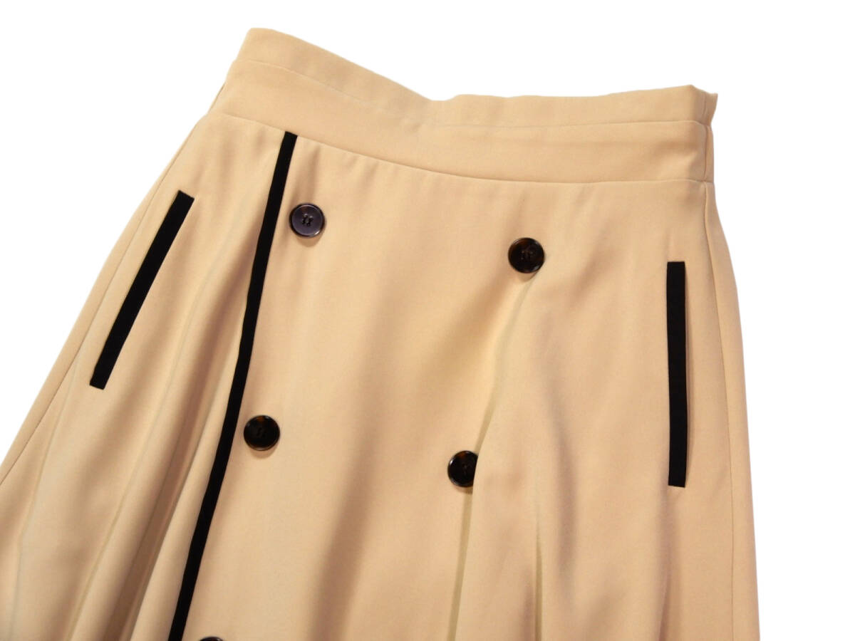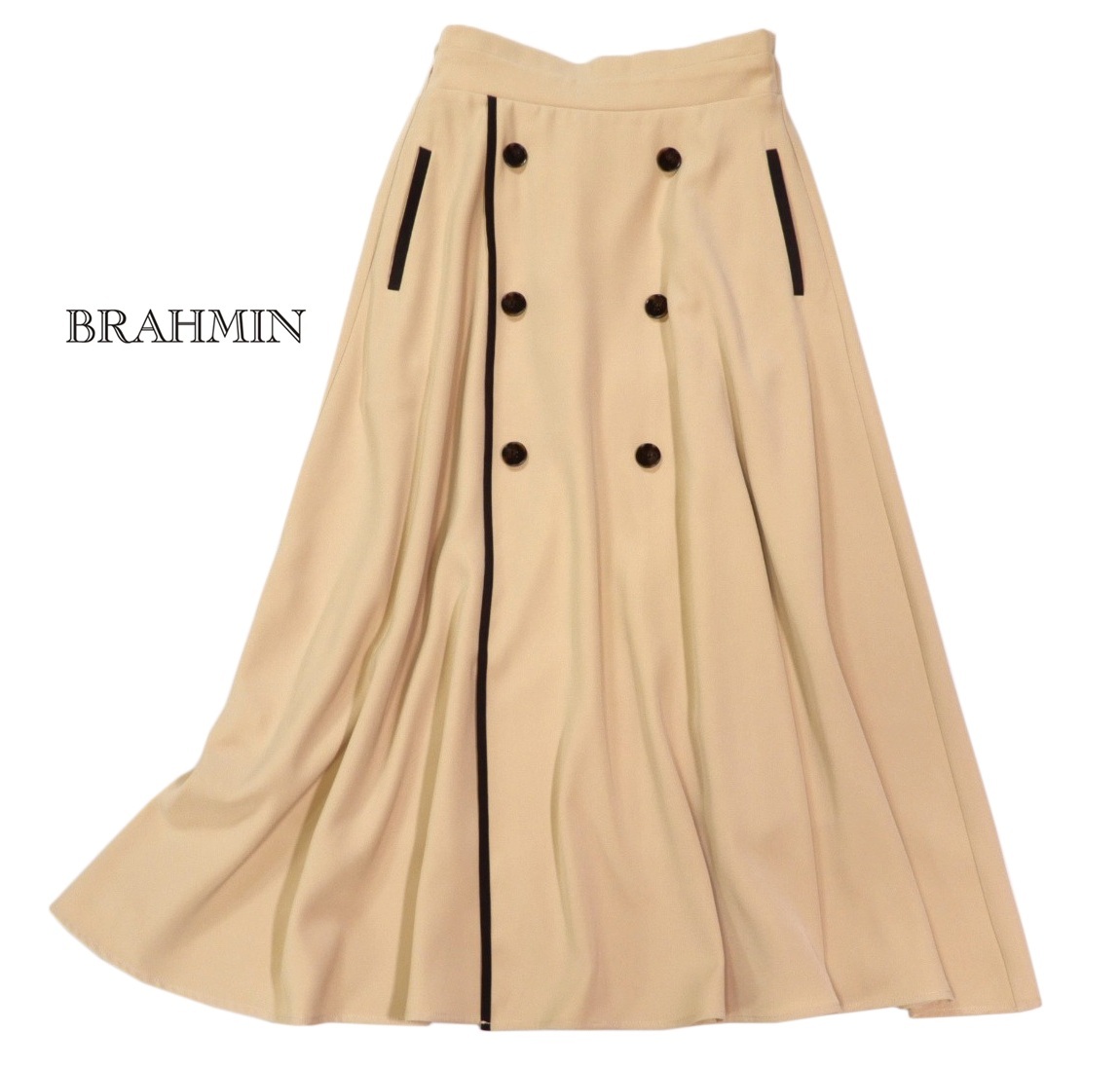 ブラーミン スカート サイズ: 38 お色: ベージュ系、ブラック 素材: ポリエステル100% 別布 ポリエステル80 綿20% 平置き実寸で W34×2(ウエストはバックがゴムで伸縮性有) 総丈85cm位です。 |