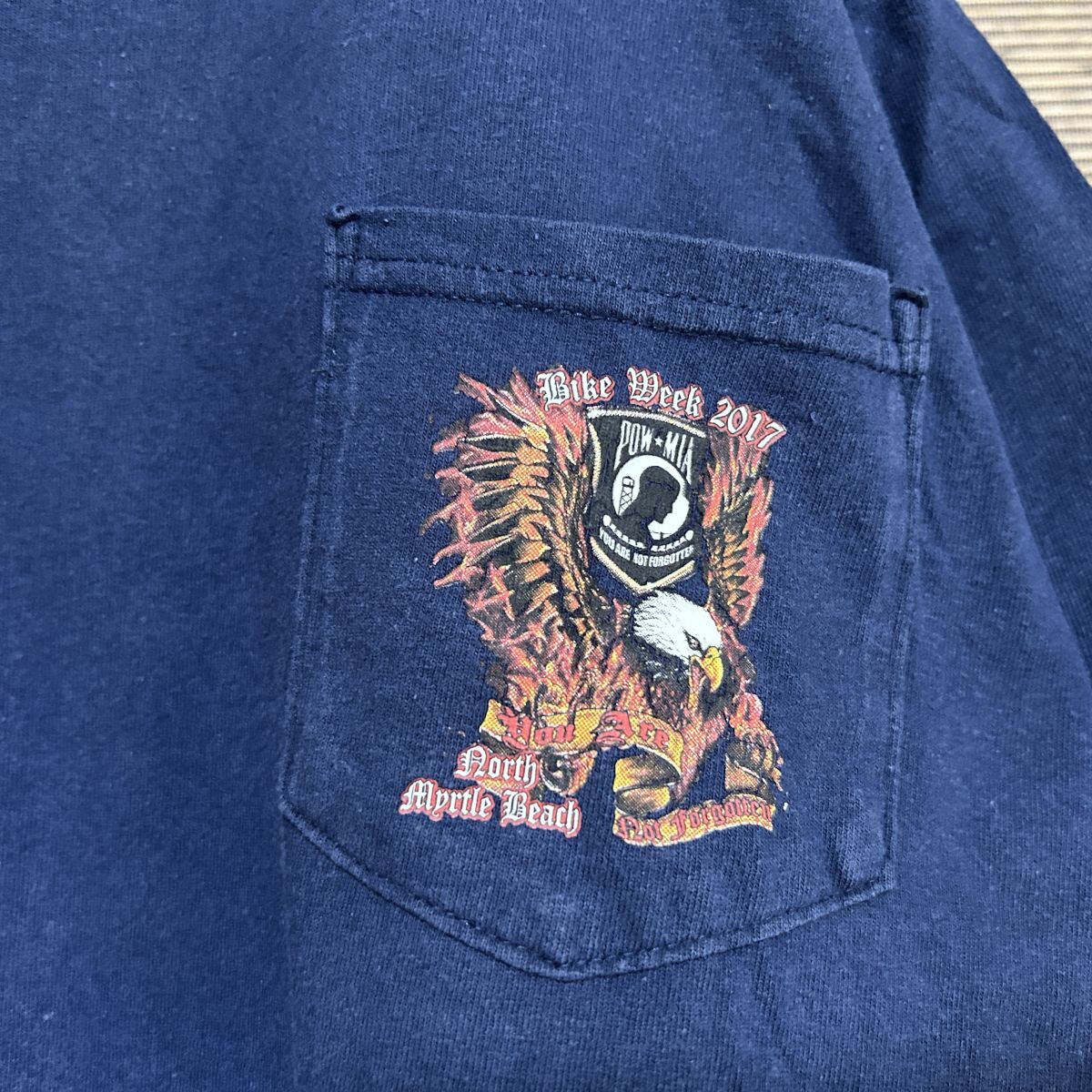 【ギルダン】半袖Tシャツ バイク ワシ イーグル ネイビー 胸ポケット@3 | |