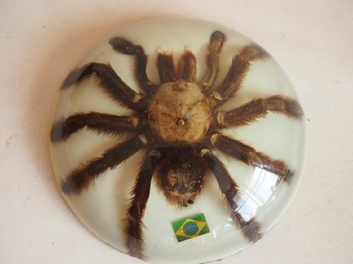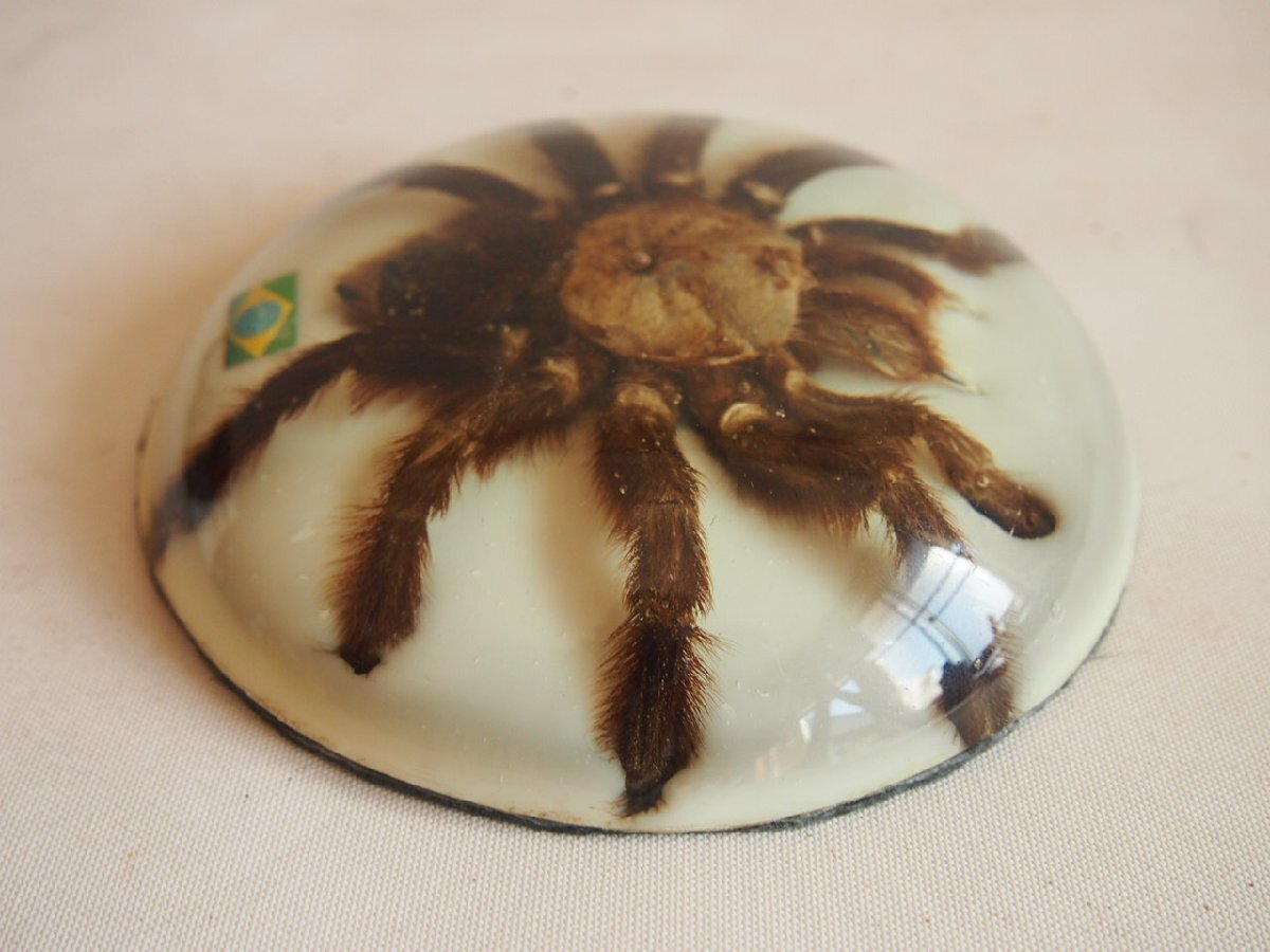 レア珍品 タランチュラ アクリル封入標本12cm スタンド付です。 タランチュラ(tarantula) ヨーロッパの伝説にも 登場する毒グモで 正に蜘蛛の王者の貫禄があり いかにもそれを思わせる個体で 男心をくすぐる カッコよさがあります★ タランチュラの種類も Brachypelma属 Grammostola属 Aphonopelma属など 複数あり 小さな目、 細かな毛や牙など 確認でき、 バランスよく 綺麗に収まっている 研究資料としても 秀逸な標本です★ 状態は目立った欠点は無く 総じて良好です。 古い品ですので画像もご確認の上 ご検討ください。 ※バトミントンの羽(高さ9cm)は サイズ確認のサンプルです。 ★サイズ(約寸) 直径12cm 厚み3cm 重量236gほど 生物学者を目指す方にも◎ 素敵なインテリアを演出してください♪ |