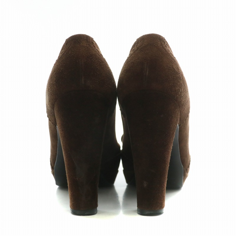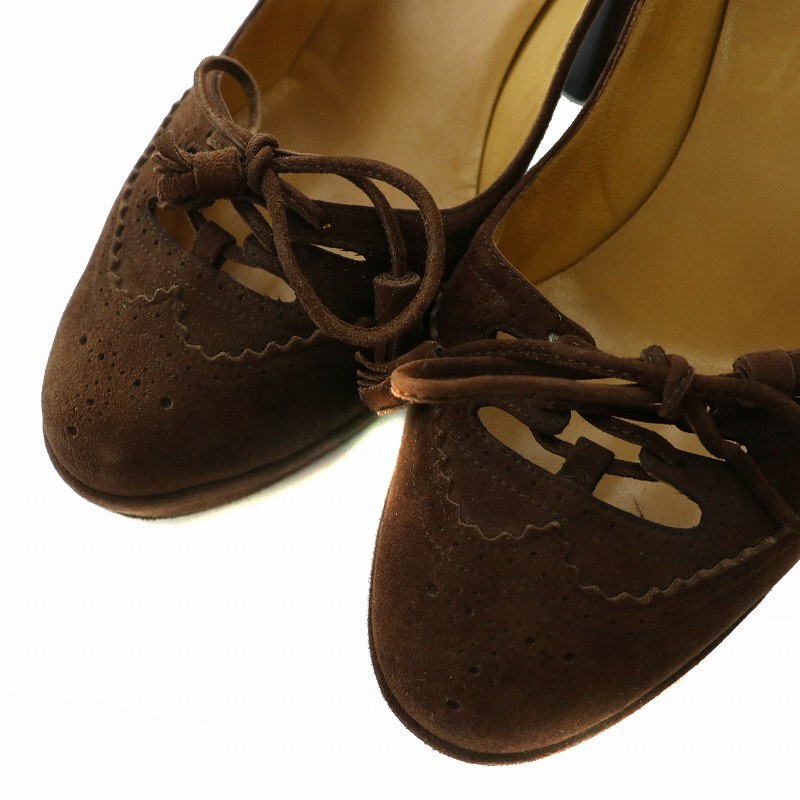 エルメス HERMES パンプス スエード ラウンドトゥ ハイヒール リボン タッセル 36.5 23.5cm 茶色 ブラウン /XZ ■GY40 レディース