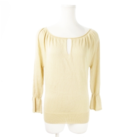 アナイ ANAYI ニット セーター ラウンドネック 七分袖 キャンディースリーブ 袖スリット 肌見せ 38 ベージュ /AO10 レディース