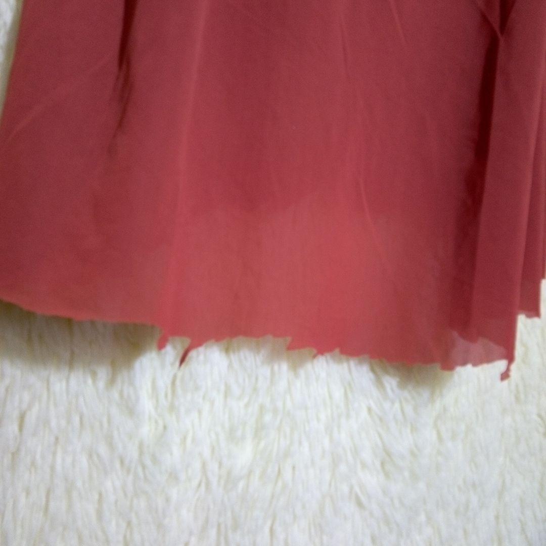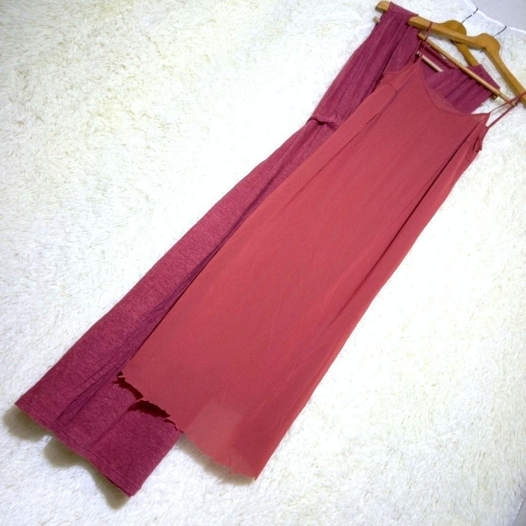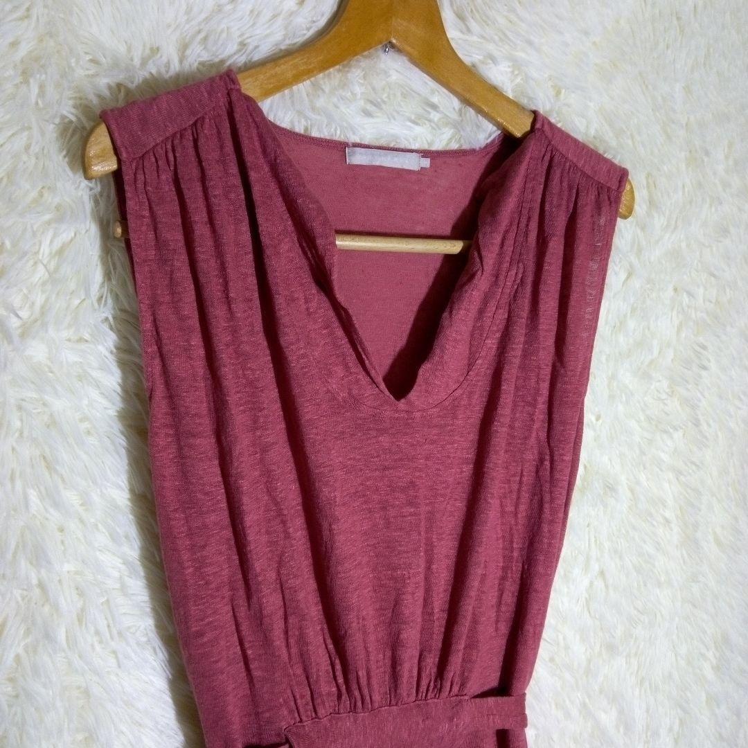 ウエストリボン付きのレンガ色のノースリーブロングワンピース