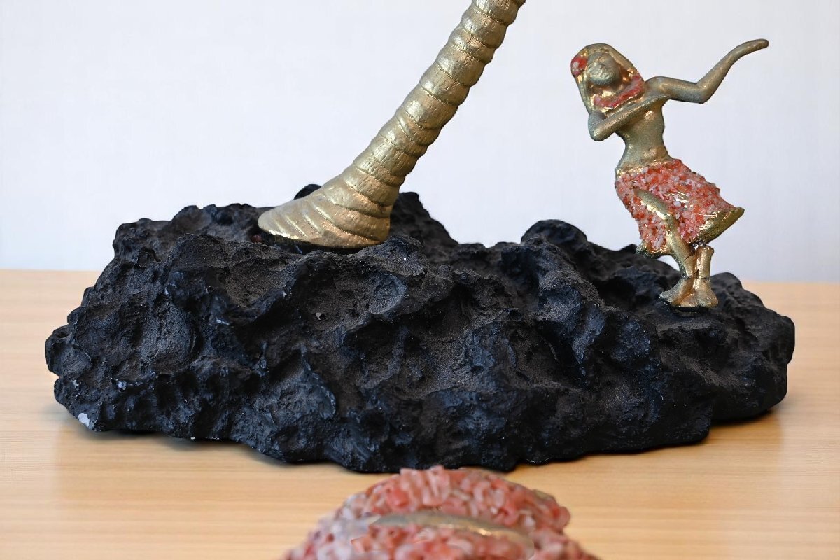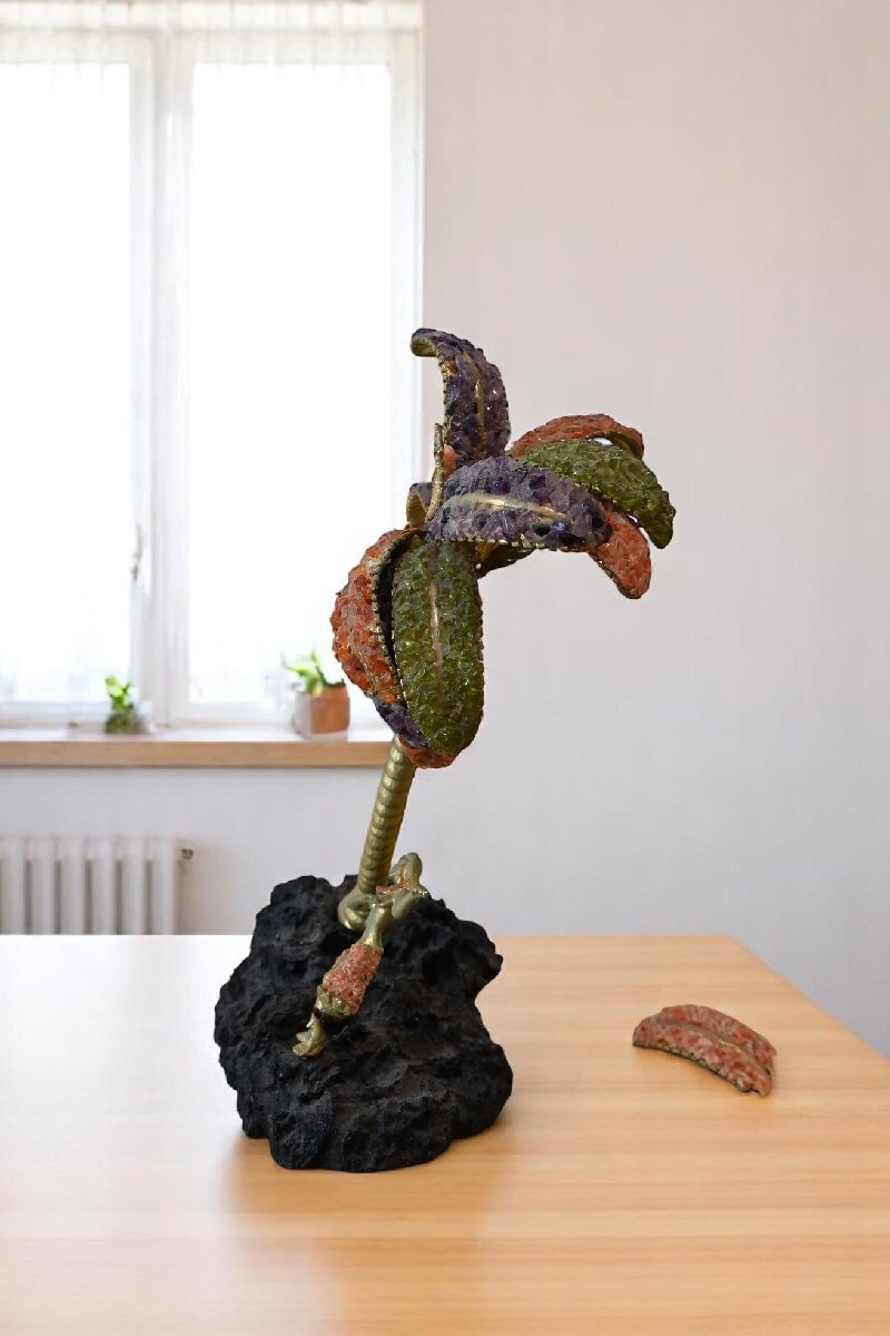 葉っぱには細かい天然石がちりばめられた民芸品です
