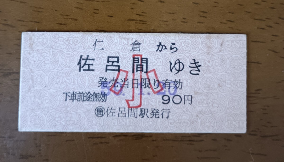 ◆国鉄湧網線 廃止(無人駅簡易委託)仁倉から佐呂間ゆき B型硬券乗車券