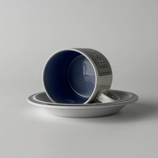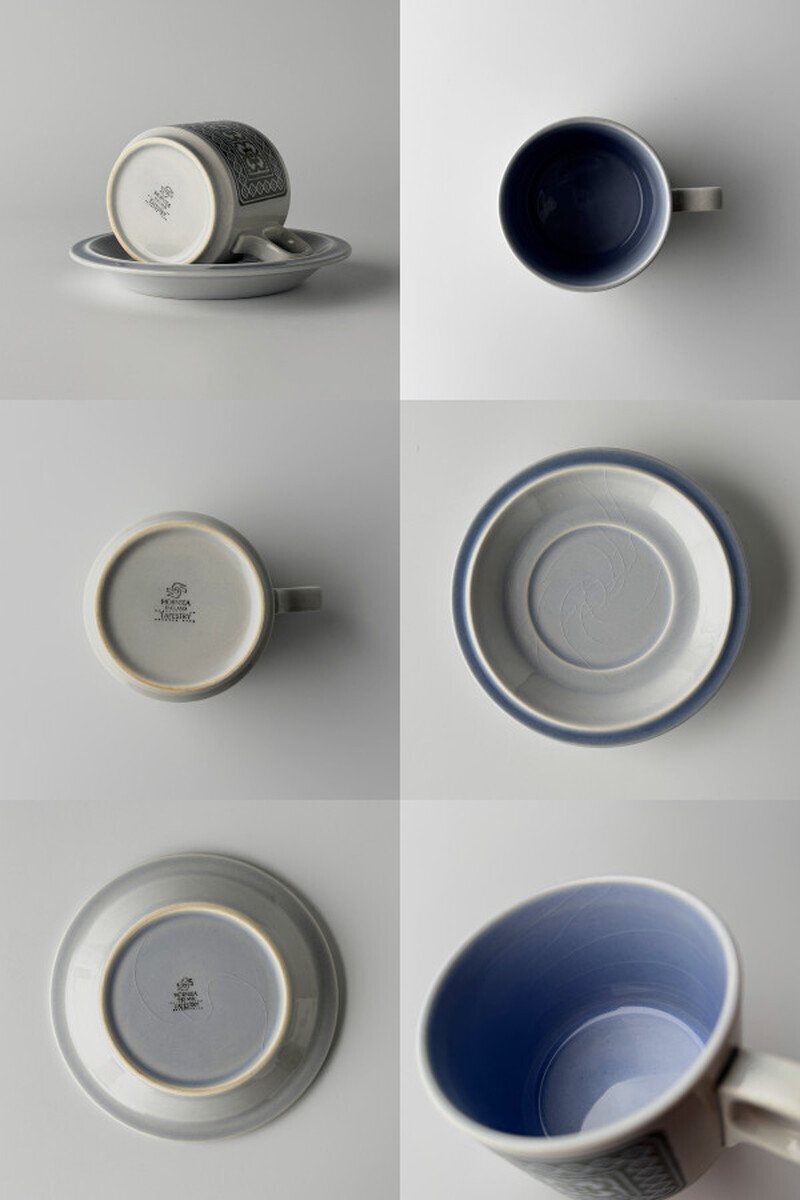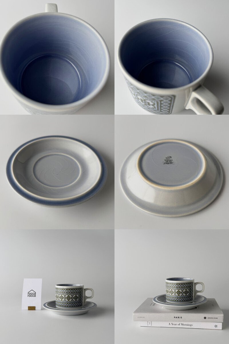 女性デザイナーSara Vardyのデザインによって1973年にリリースたTAPESTRYシリーズ。テキスタイルを学んでいた彼女らしいタペストリー柄(織物装飾のパターン)を淡いブルー地にあわせたデザインと立体エンボス仕上が特徴的です。