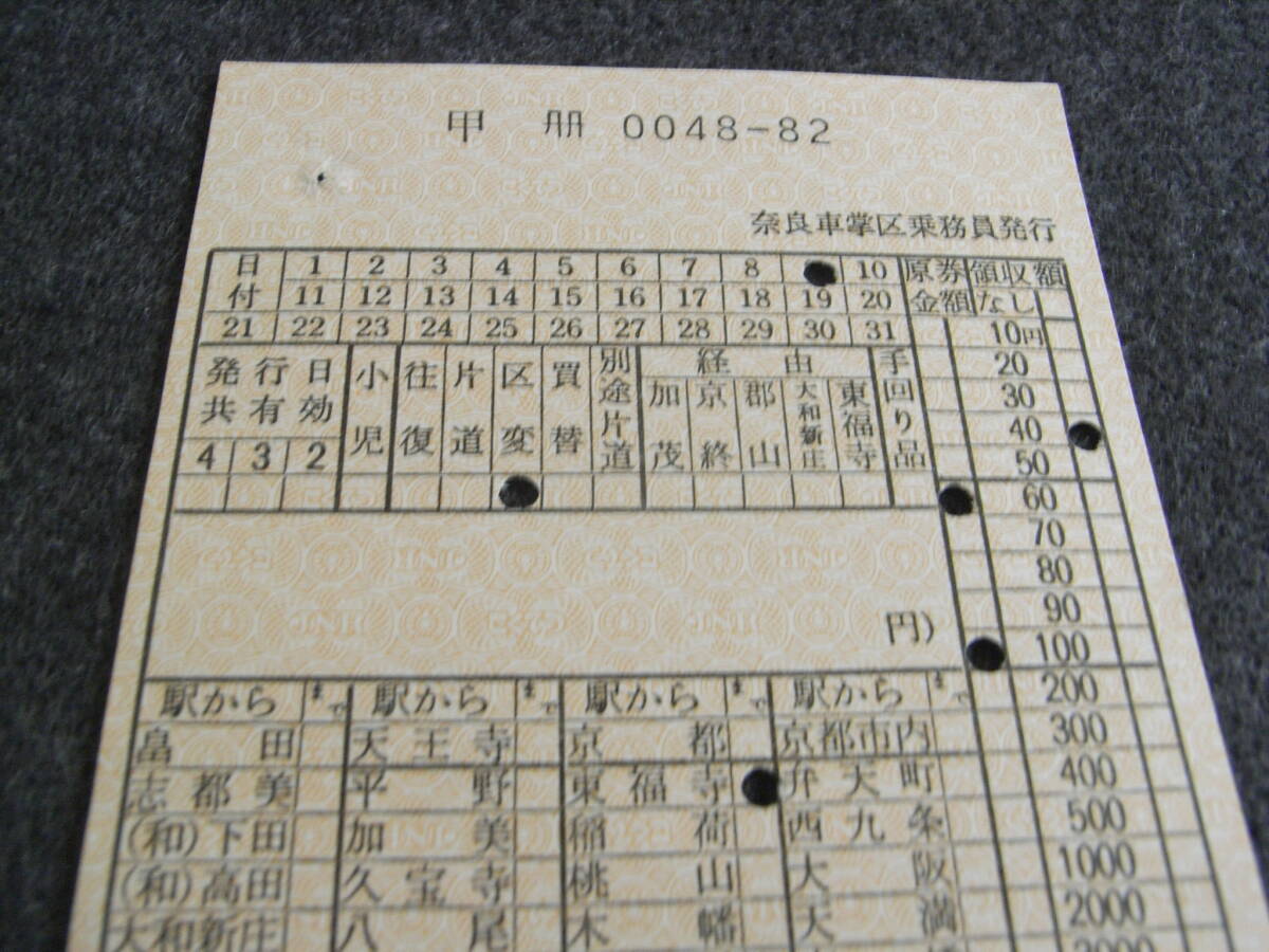 車内補充券 奈良車掌区乗務員発行 0048-82 国鉄