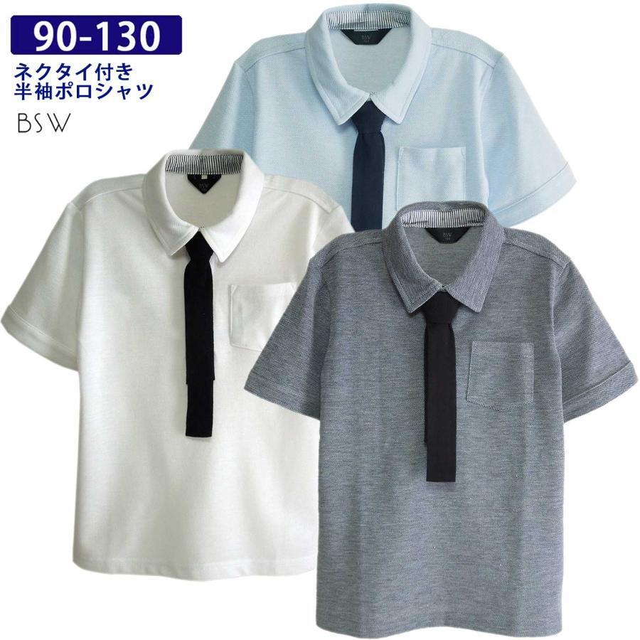 ☆新品未使用☆ 3109 グレー 120 ポロシャツ BSW 男の子 半袖 ネクタイ付き カノコ 通園通学 お受験 中国製