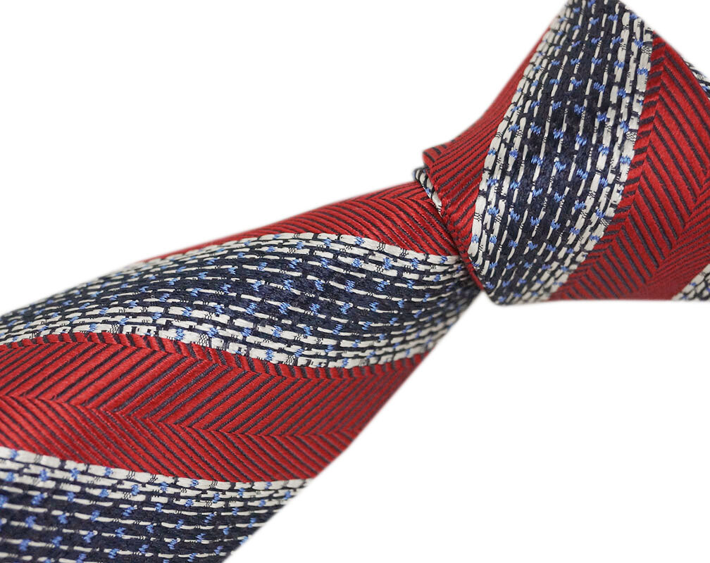 未使用 ゼニア ブランド ネクタイ エルメネジルド・ゼニア 高級 シルク 100% ストライプ レッド スノーホワイト ネイビー 赤 紺