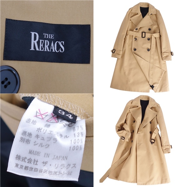 美品 ザ リラクス THE RERACS コート トレンチコート コットン アウター レディース 34(S相当) ベージュ |