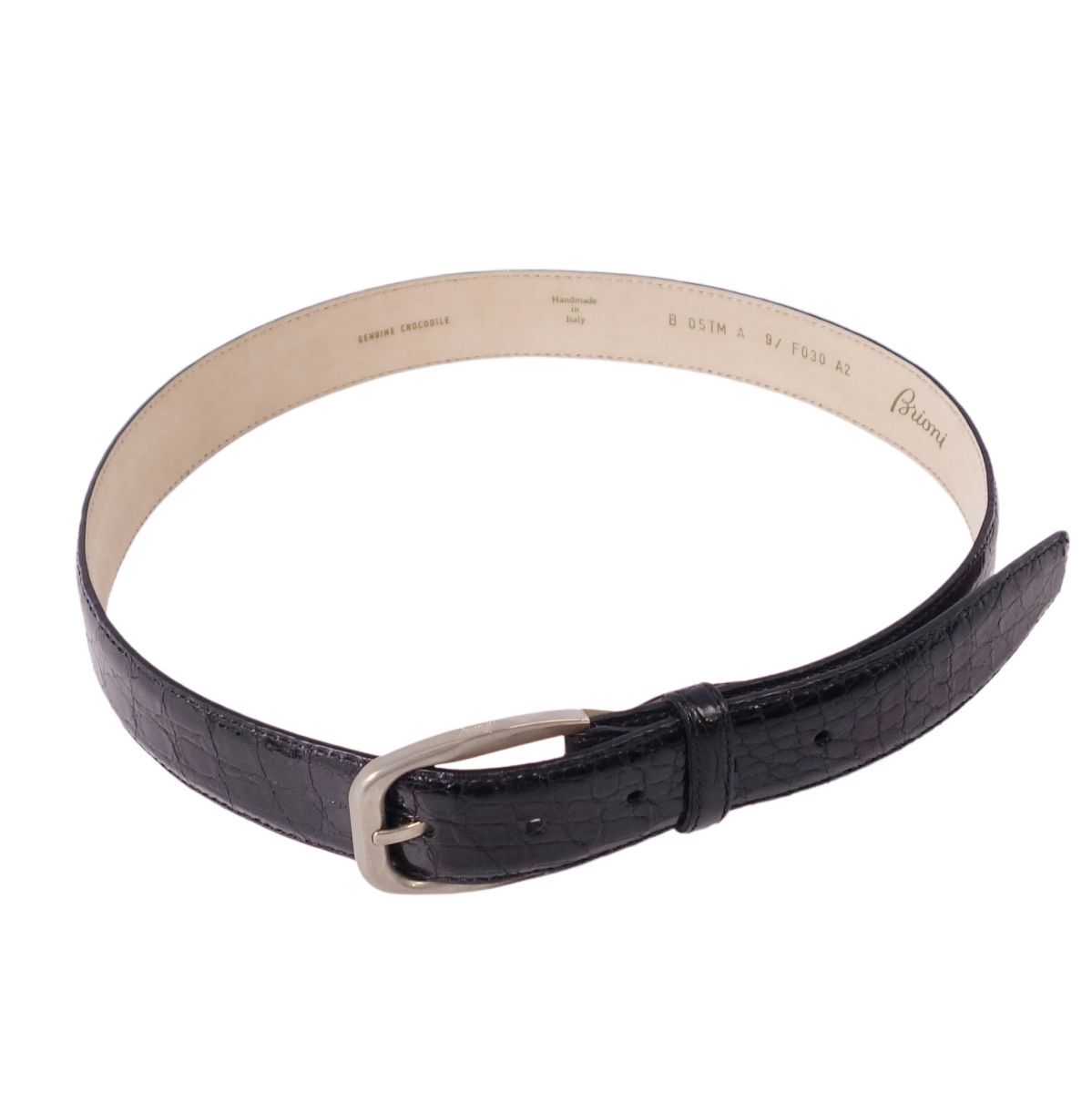 美品 ブリオーニ Brioni ベルト レザーベルト クロコダイル ワニ革 メンズ イタリア製 90 ブラック |