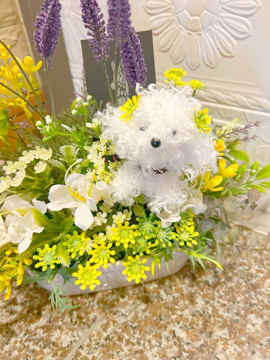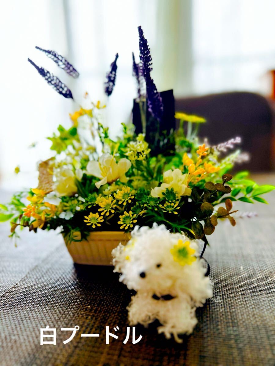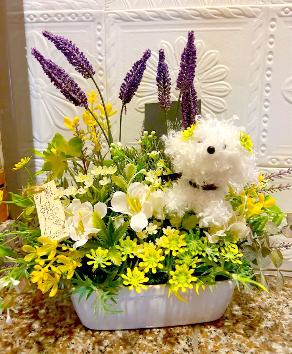 No.95 特価!1,000円〜白いプードルちゃんモールドール入り!白の器爽やかラベンダーアレンジ!ラッピング付き!