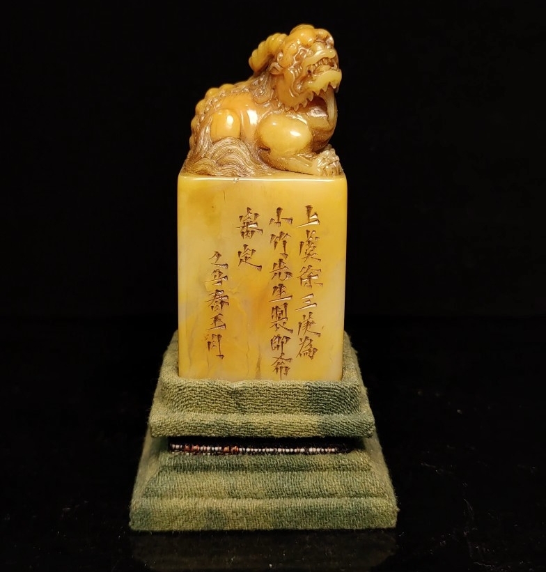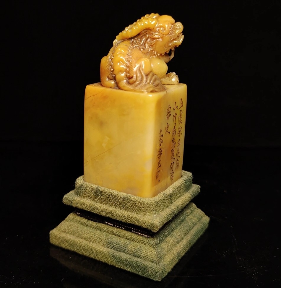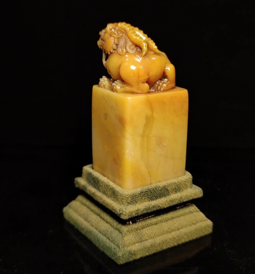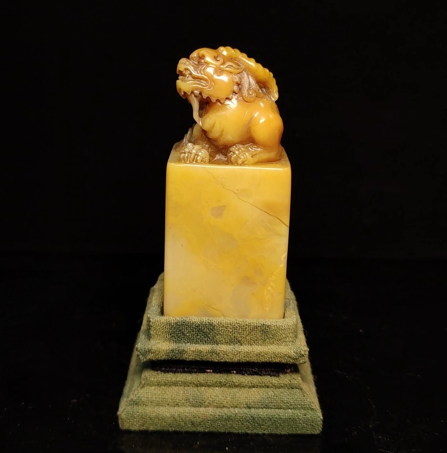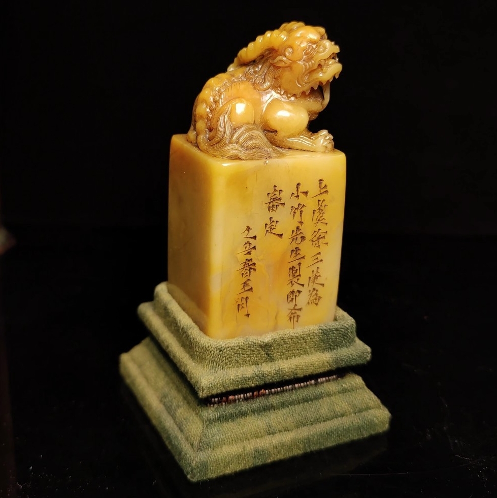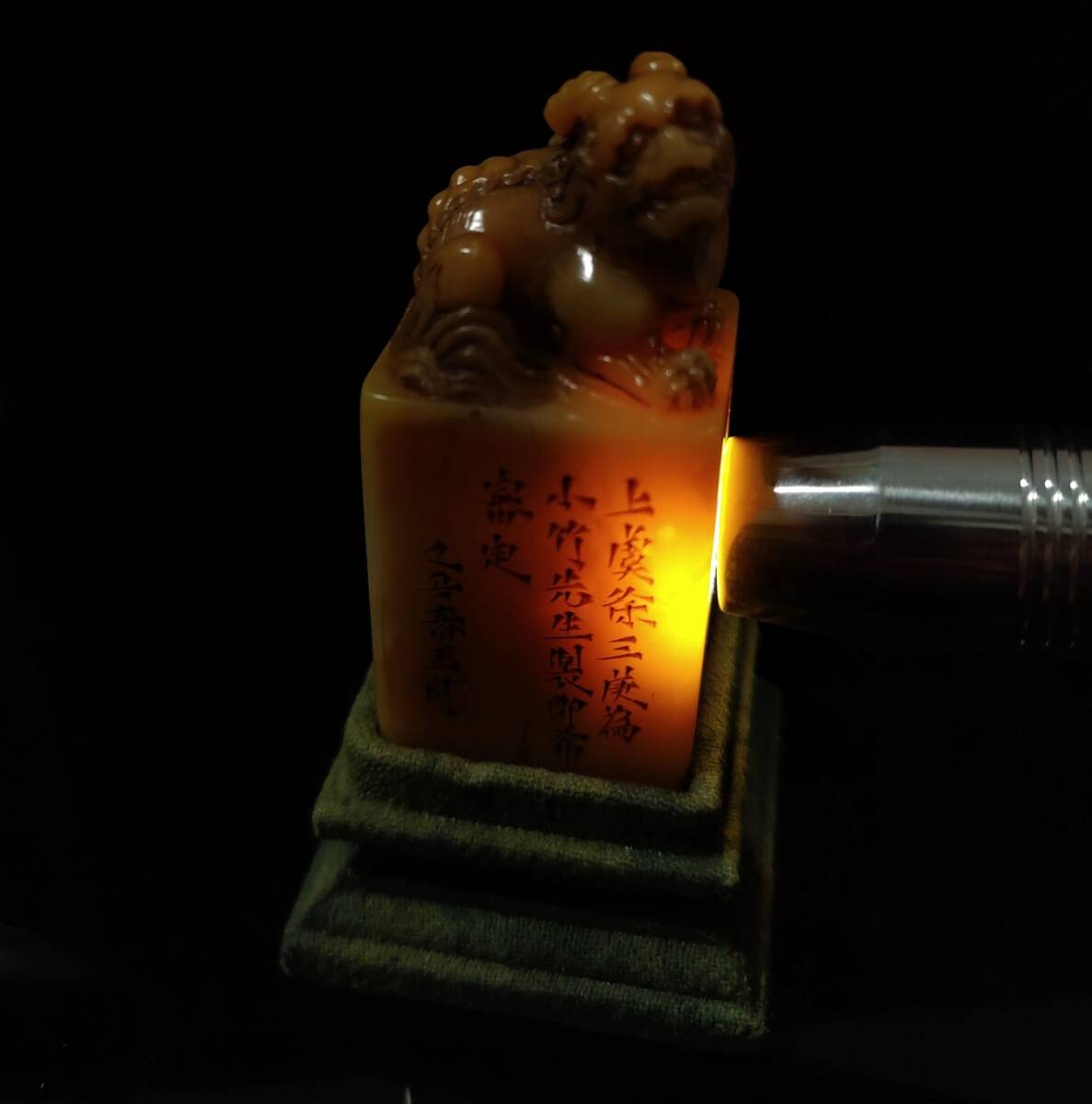 *珍品旧蔵* 【清代篆刻家 徐三庚】寿山石 極品金 田黄瑞獣 印鑑 天然石 手彫 篆刻 極細工 唐物 中国古玩 骨董品 古美味 H45
