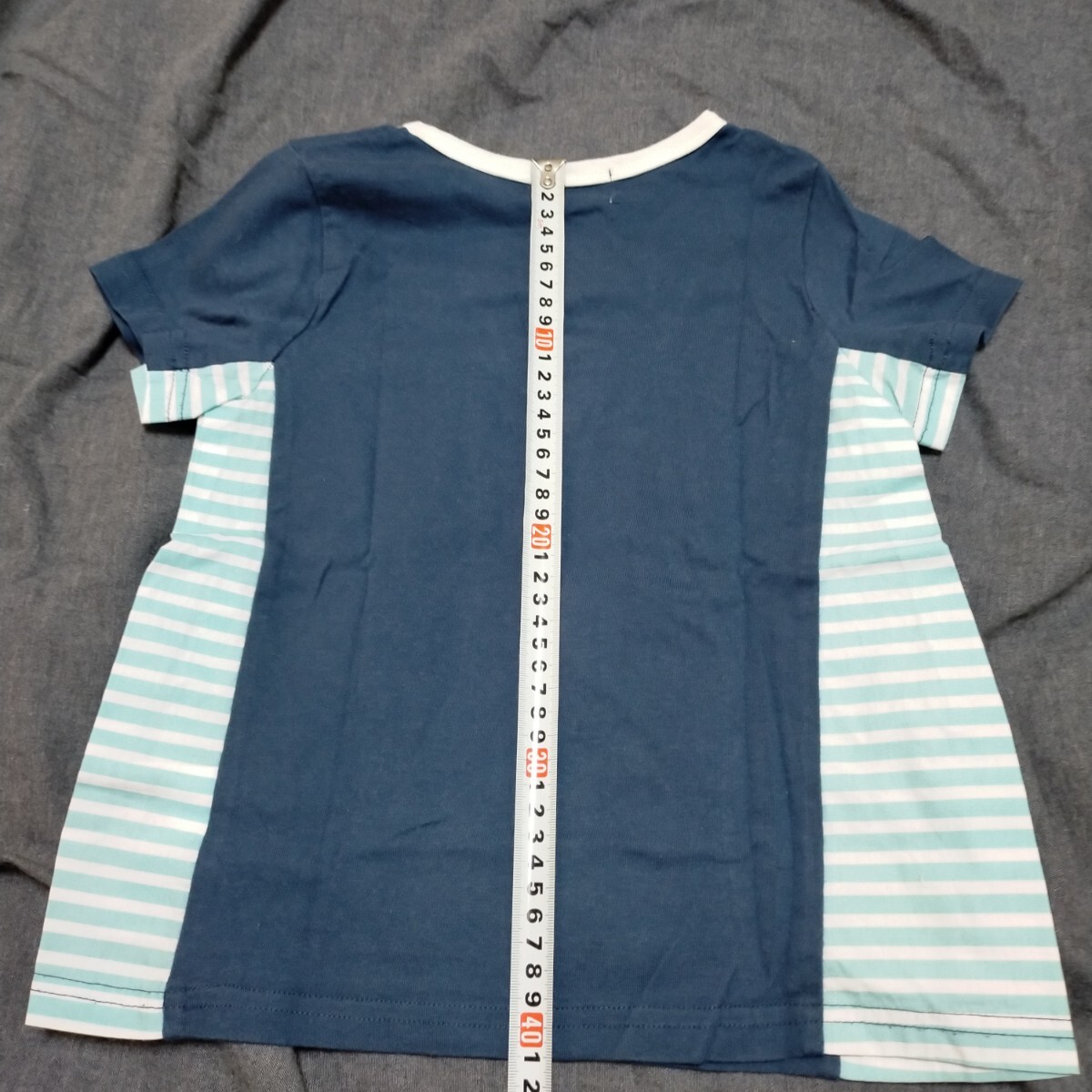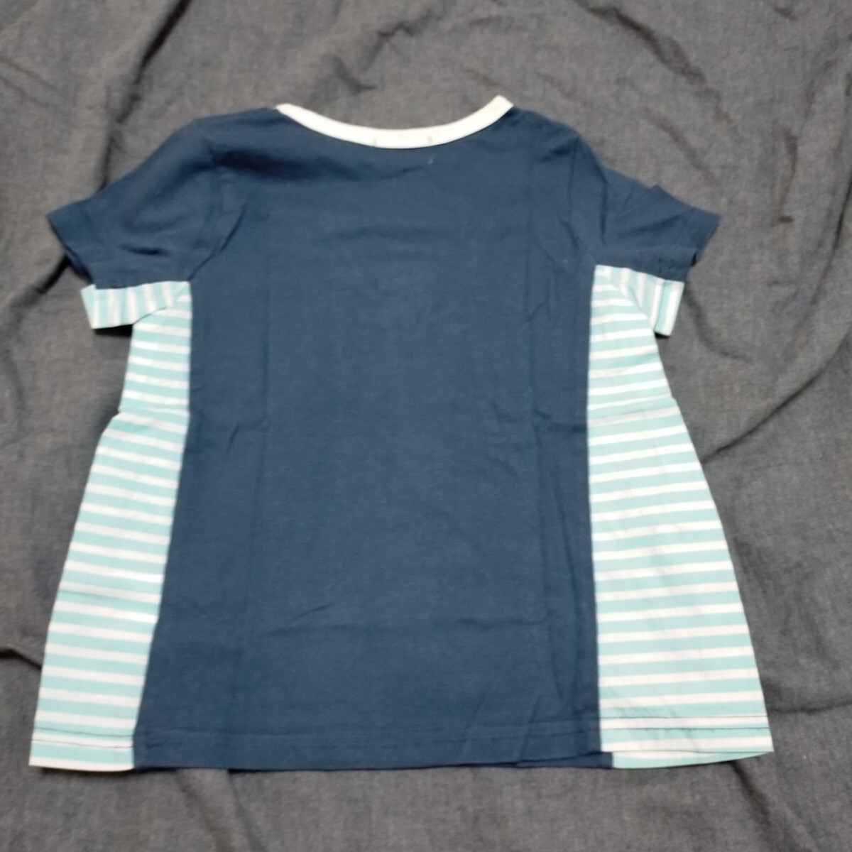 ネイビーの生地に脇部分はボーダーの記事が合わさっています。胸にSOFTと記載があります