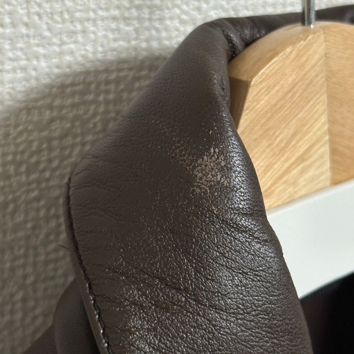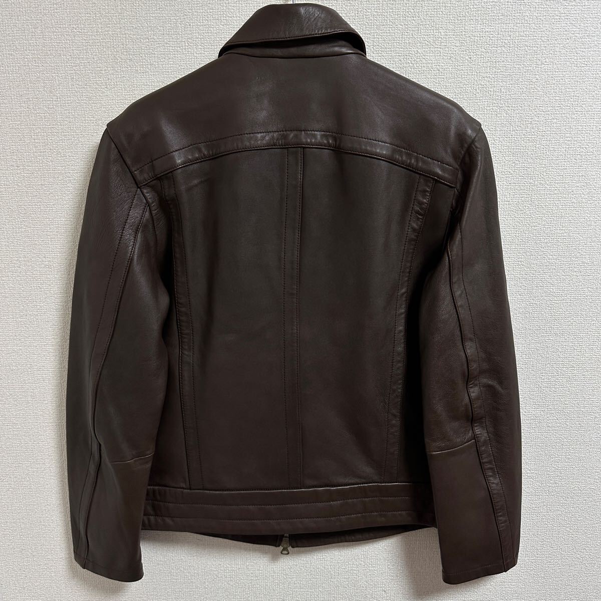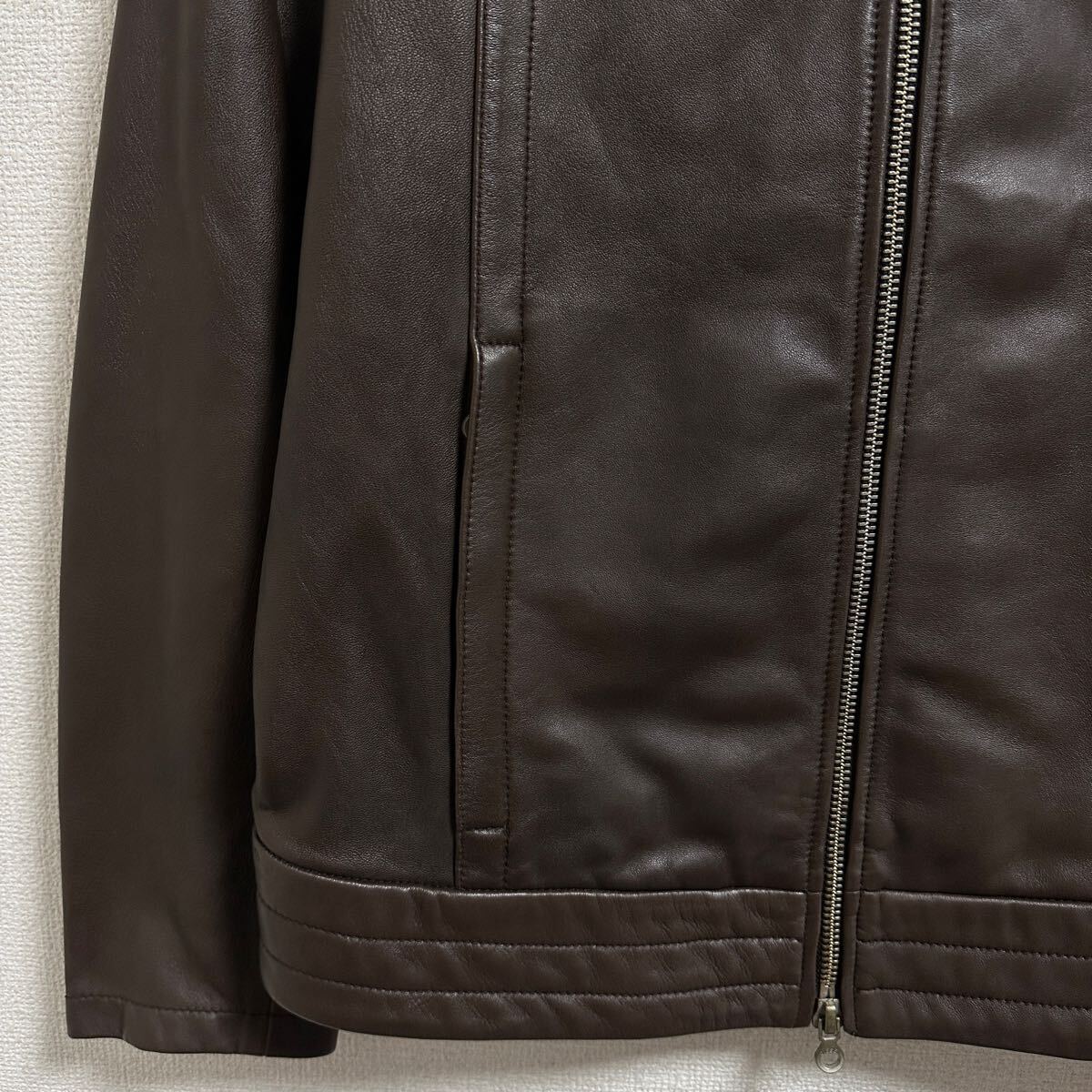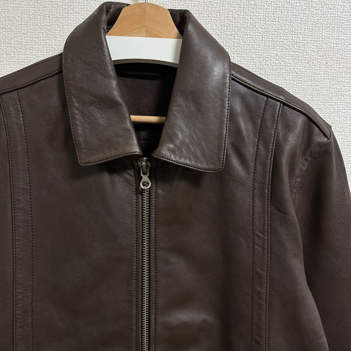 ベジタブルタンニンなめしのラムレザー。ベジタブルタンニンなめしとは、植物からとれるタンニンを使って皮をなめす方法で手間暇がかかった温かみのある革を作るのが特徴です。裏地がないため、柔らかな着心地。オーソドックスなシルエットのため、1枚持っているとスタイリングの幅が広がります。ボトムス次第でカジュアルからキレイめまでスタイリング可能です。