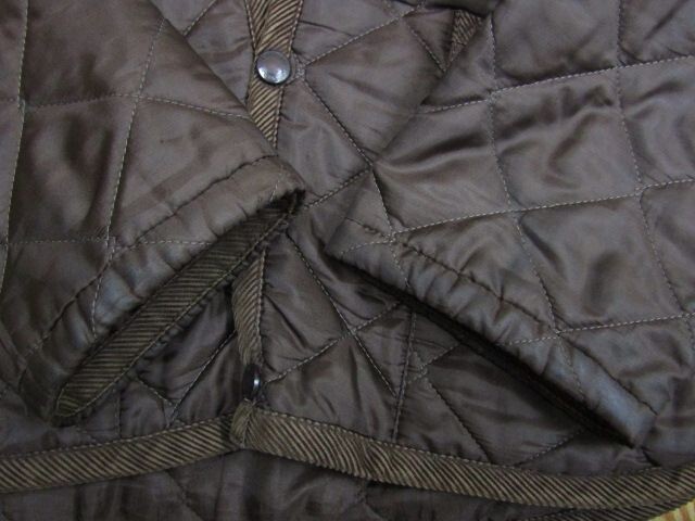 商品説明 | 「ラベンハム」と「ポ-ルスミス」の英国ブランドによる豪華競演! 定番のキルティングジャケットに、上品なエッセンスがさらに加わったエクスクルーシブな逸品です。 カジュアルにもビジネスにも着こなせるのが、やはり最大の魅力です!! 代名詞とも言えるダイヤモンドキルティングジャケットです。 各所に施された生地と同色のコーデュロイを使用したパイピングが良いアクセントになっています。 中古品ですので使用感、経年使用によるアタリや褪せ・黒ずみ・薄汚れ、所々にステッチの糸抜け、左右袖先に汚れと左袖先に多少の擦り切れ(写真8枚目)、襟周りに汚れ、裏地フードに汚れ(写真9枚目)はありますが、その他特別に目立った汚れ、破れなどはなく、全体的にはまだまだ着て頂ける状態であると思います。 念のため神経質な方、状態にシビアな方、細かい事にこだわります方は入札を御遠慮下さい。 商品の状態についてはあくまで当方の主観となりますので、その点をご理解の上、入札をお願い致します。 カラー: ブラウン 素材: ポリエステル100% 表記サイズ L (色 、柄などについては商品写真をご確認下さい。) 肩幅 46cm 身幅 52cm 着丈 67cm 袖丈 62cm (素人採寸のため多少の誤差はご容赦下さい) |