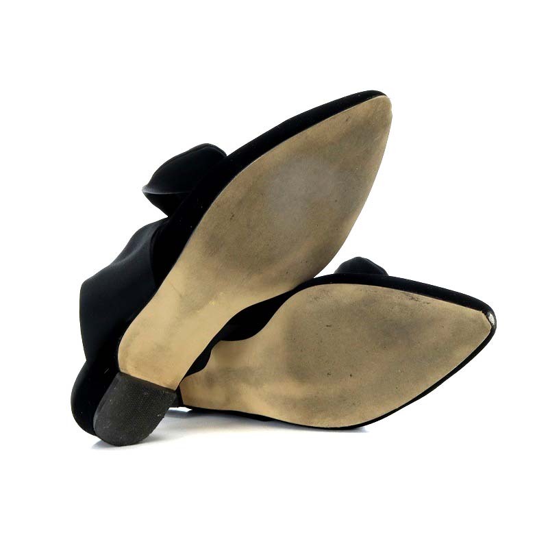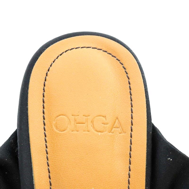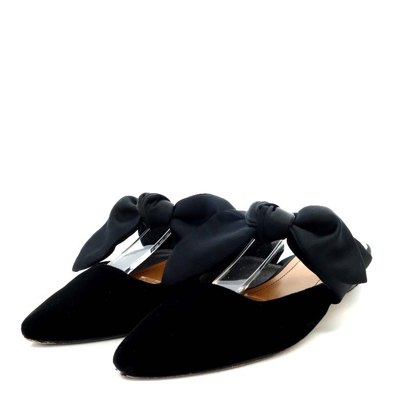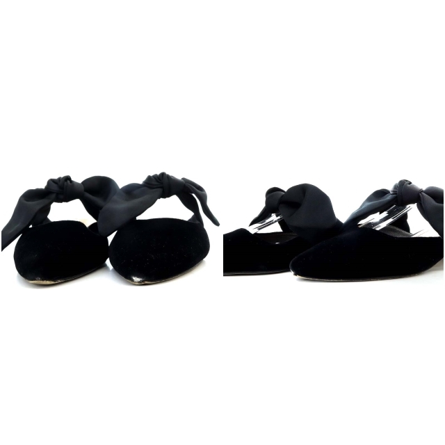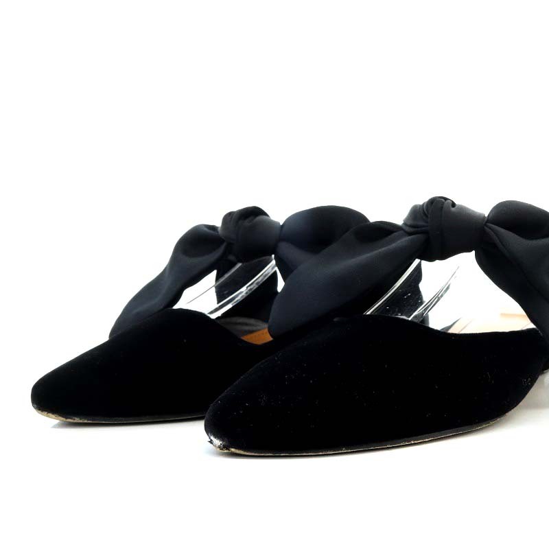 オーガ OHGA ベロア リボン ミュール パンプス フラット S 22cm-22.5cm 黒 ブラック /YO12 レディース