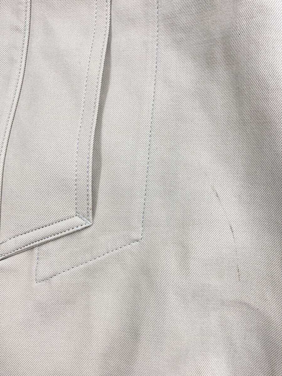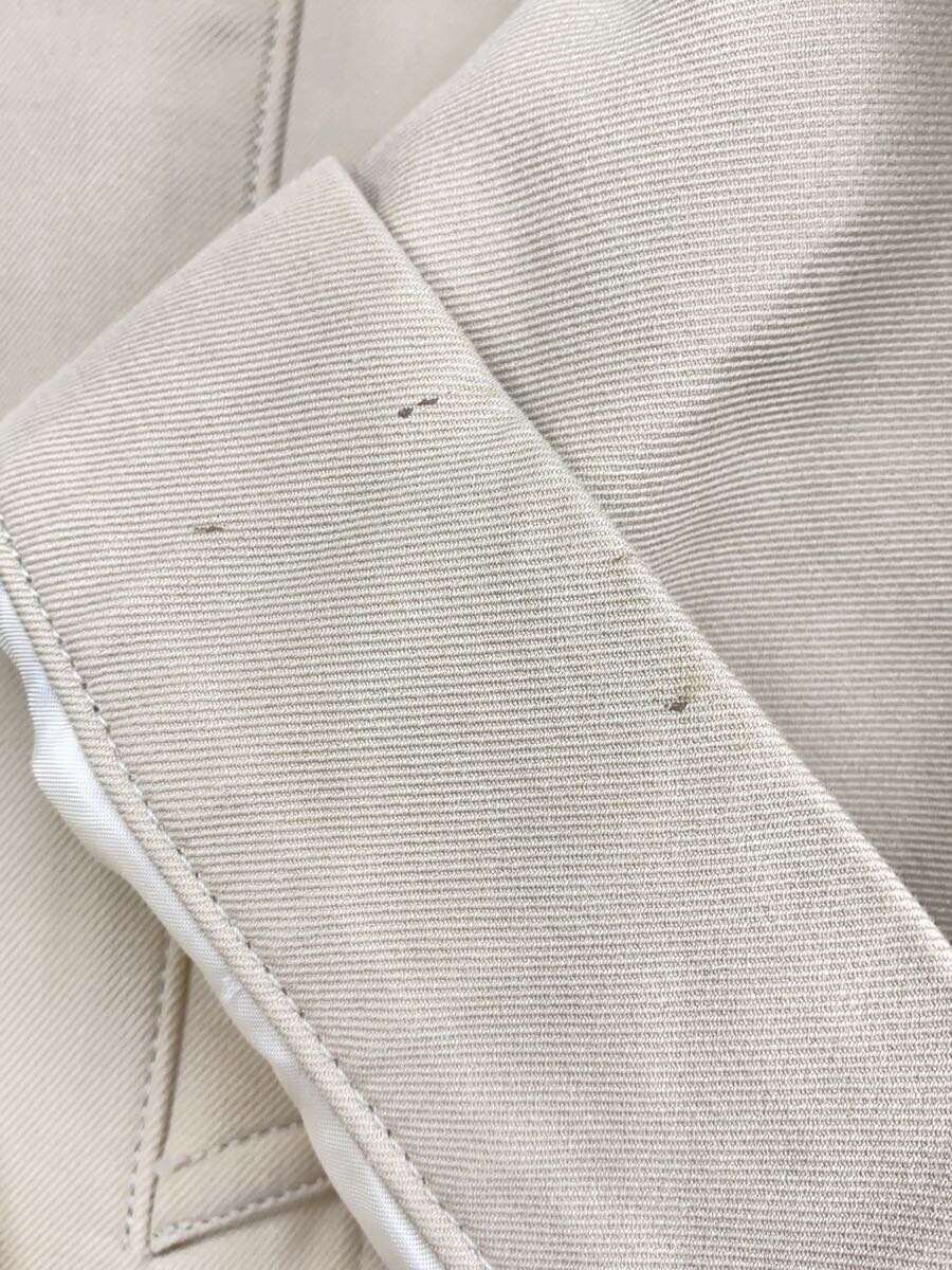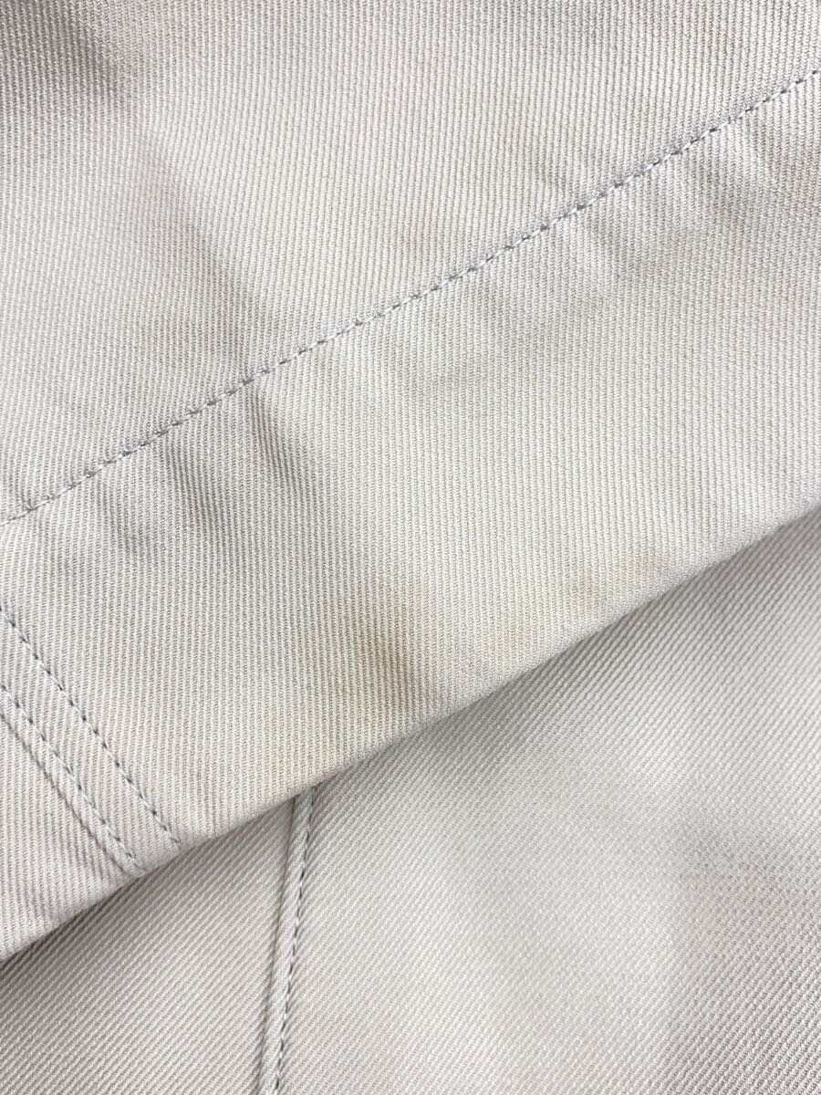 | 右袖、袖口内側に小さな汚れが複数ヵ所ございます。左ポケット横に線状の汚れが付着しています。左袖、袖口下側に黄ばみがございます。 |