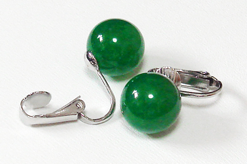 深みのあるグリーン♪天然ヒスイ イヤリング 9mm(染め)