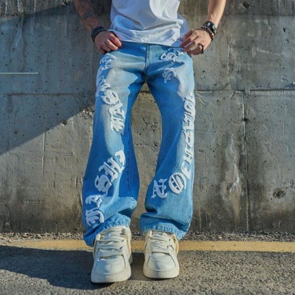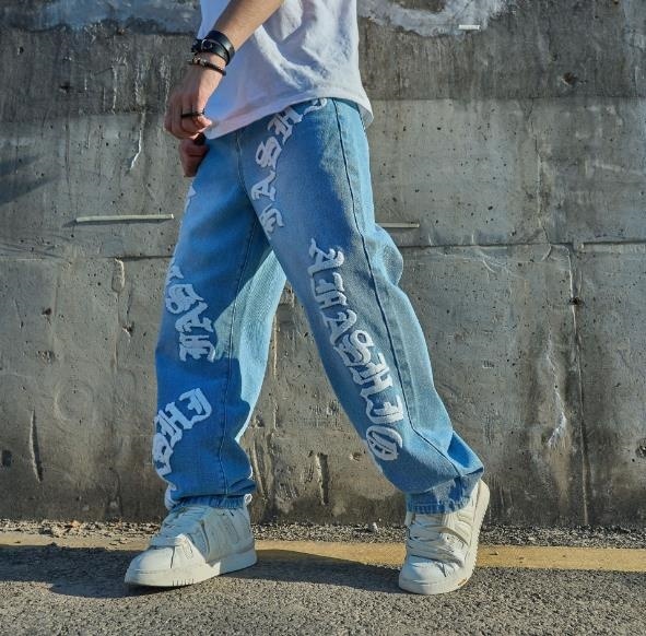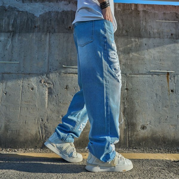 新品★未使用 ジーンズ ジーパン Gパン メンズ デニムパンツ ズボン ボトムス 個性【2216】ブルー XL