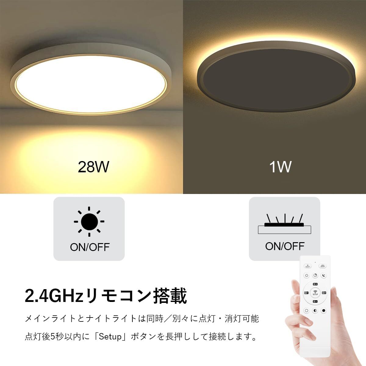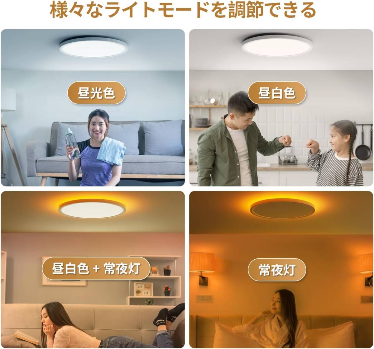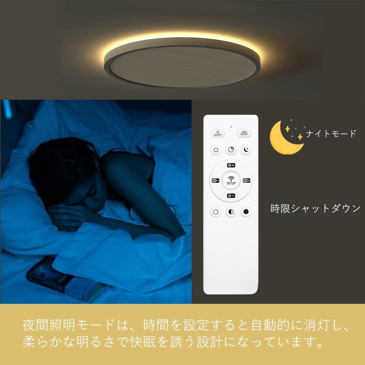 メインライト28W+バックライト1W。 LEDシーリングライトに、リモコンで設定するプロフェッショナルスリープモードを追加しました。 背面のナイトライトは、光が直接目に入るのを防ぎ、よりソフトな光を実現します。 バックライトはメインライトと同様に色調整が可能で、個別にオン/オフができます。