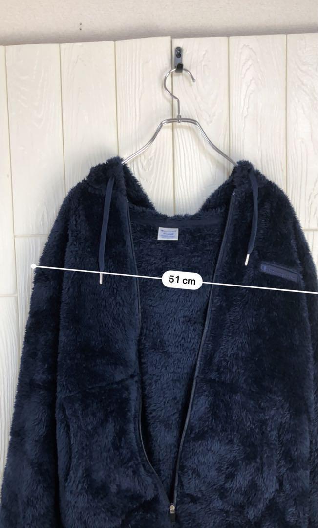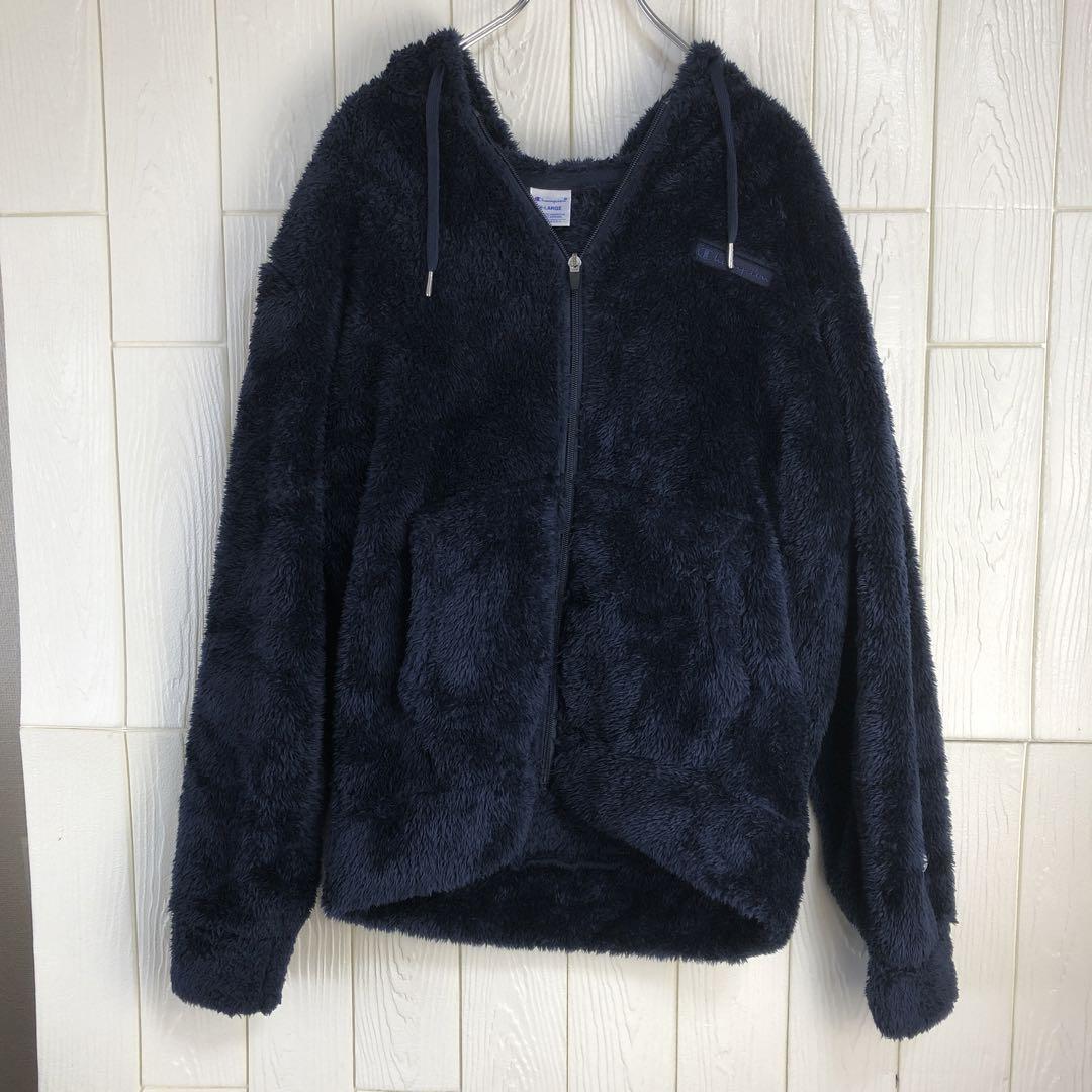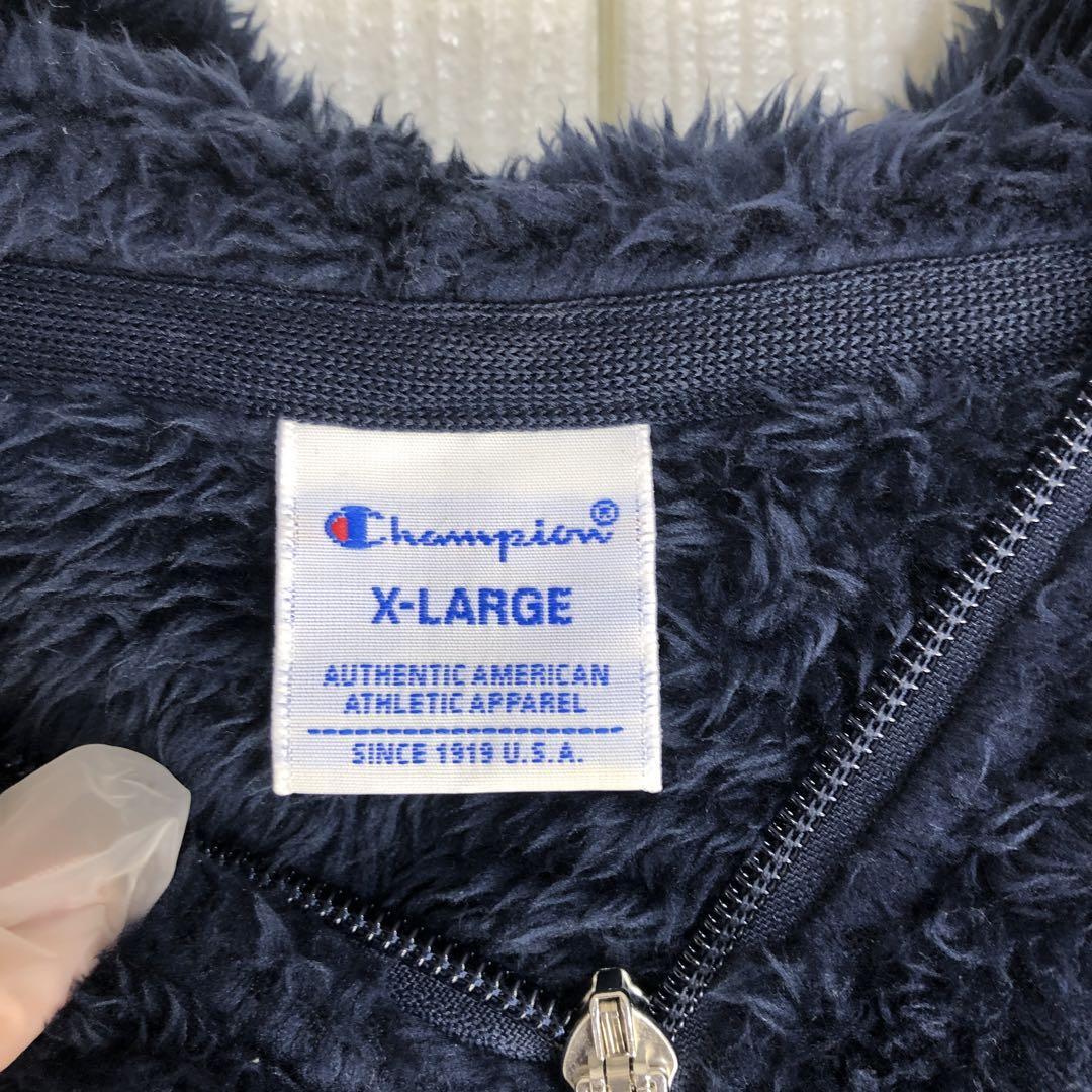 ネイビーのフリース素材で、暖かさと快適さを兼ね備えたX-LARGEサイズのジャケット。