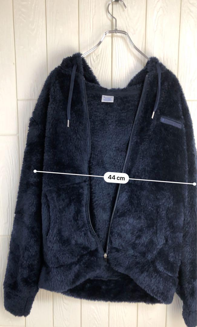 ネイビーのフリース素材で、暖かさと快適さを兼ね備えたX-LARGEサイズのジャケット。