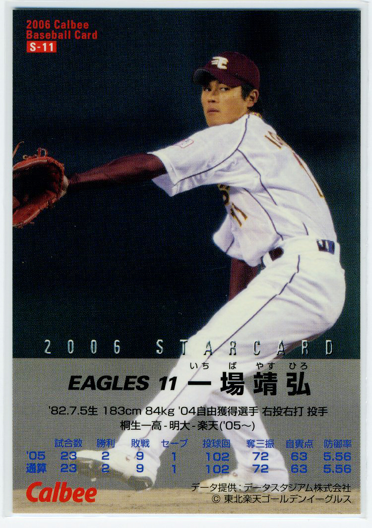 【カルビー 2006 プロ野球チップス S-11 一場靖弘(楽天) 金箔サイン スターカード】