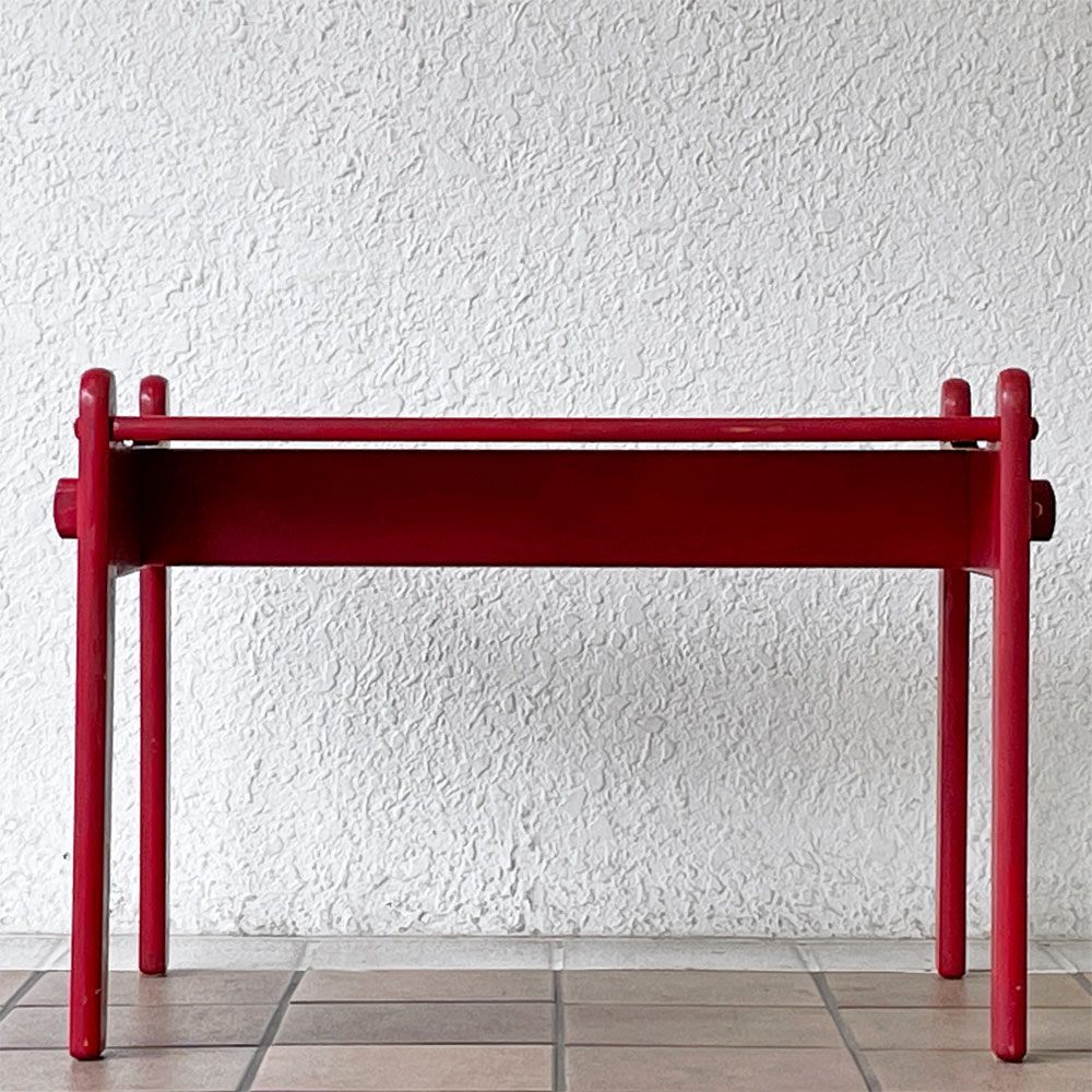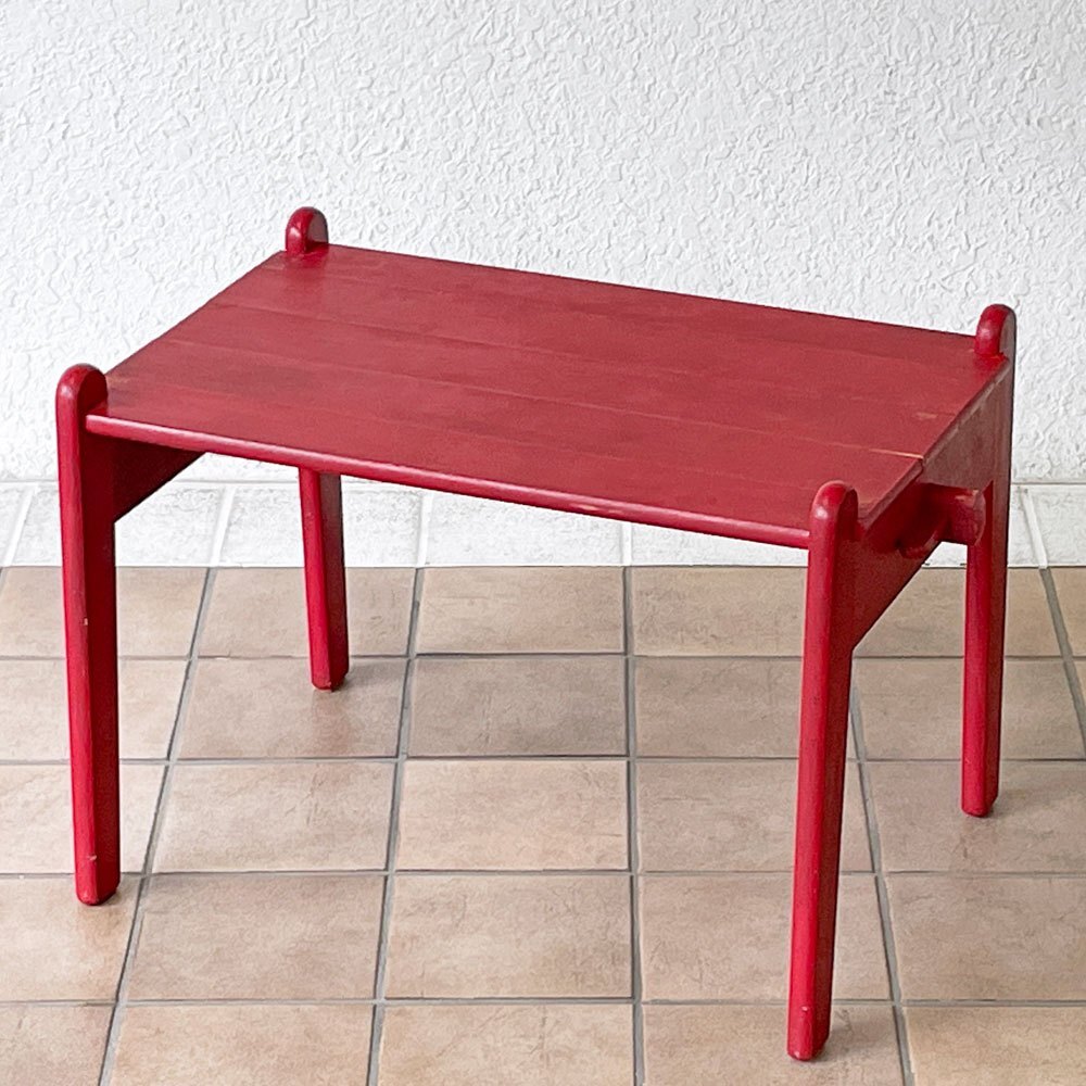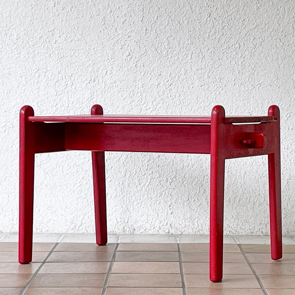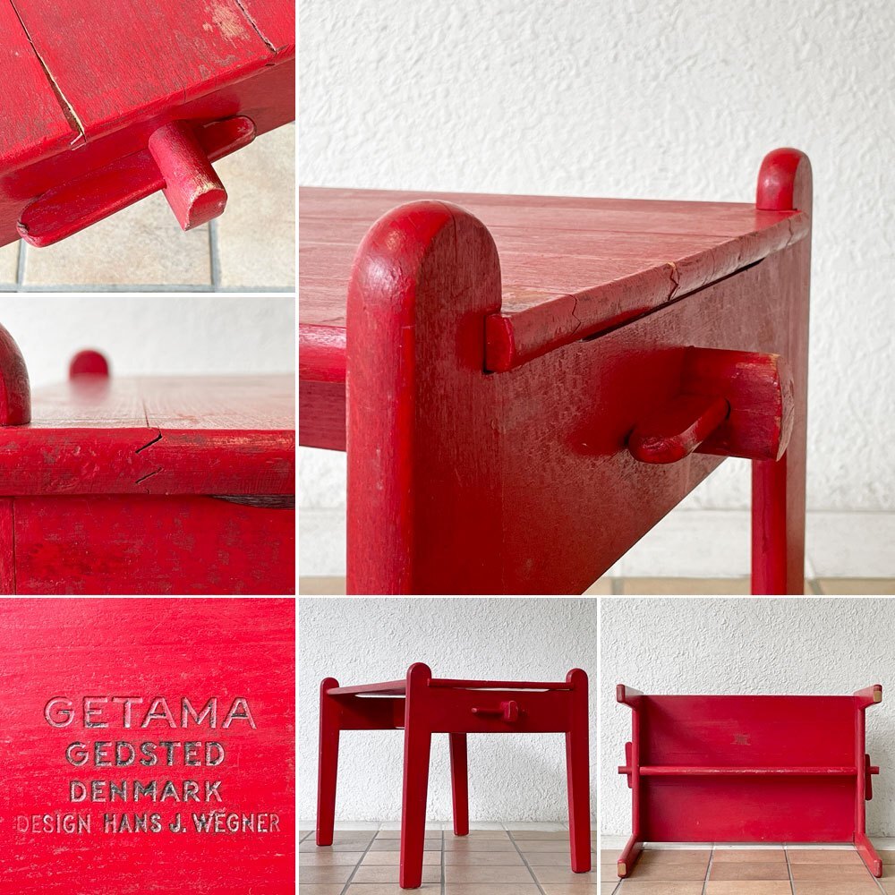 | コメント | 北欧を代表するデザイナー ハンス・J・ウェグナーが、親友ボーエ・モーエンセンの長男、ピーターの誕生祝いの為にデザインした 「ピーターズテーブル PETER'S TABLE」 。 当時は第二次世界大戦の真っただ中で、特別な贈り物として自身で家具を作るというウェグナーらしいエピソードが人々の心を温めるアイテムです。幼児が安全に使える事を考慮し、パーツ一つ一つの角が丸く削られたデザイン。 ネジ類を一切使用しない設計により、手軽に分解と組み立てをする事が可能です。 それはまるで実寸大の3次元パズルのようで、シンプルながらも天板下には僅かな吹き抜けが設けられる等、拘りのディティールが伺えます。 子供用家具の名作として現在の家具デザインに大きな影響を与え現在も当時と変わらぬ人気を博しているピーターズテーブルですが、こちらは "ゲタマ"社が製作した時代の大変希少なビンテージアイテム。 レッドペインテッドが空間に活き活きとしたアクセントを添え、コレクションには勿論、店舗用インテリアとしてもお勧めです。 一点のみの入荷となっておりますので、お探しの方は是非この機会をお見逃しなく。 ※当ショップは、主にリサイクル品を取り扱っております。基本的にUSED品である事をご理解頂き、ご入札をご検討下さいませ。 |