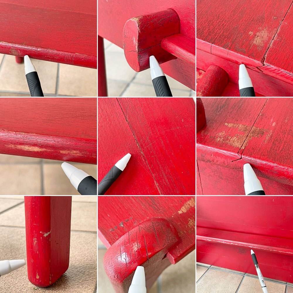 | コンディション | こちらはビンテージ品となります。こちらは後年ペイントが施されたものと思われ、使用に伴う擦れ傷、打痕、線傷、黒ずみ、着色、ペイントロス、天板の接合部には接着痕、側面の閂止めの受け具はヒビを修復したものと思われ年月相応の使用感が見受けられますが、いずれも大きく風合いを損なうものではございません。ほか脚部と天板のわずかな隙間によりわずかに動く事がございますがご実用に影響するものでは無く、今後とも雰囲気を他楽しみながらお使い頂ける、ビンテージ品として概ね良好なコンディションを保っております。 ※特筆すべきコンディションは出来るだけ記載させて頂きますが、細かい擦れや傷、汚れ等を完全にお伝えする事は出来ません。画像をご確認の上、ご入札をご検討下さいませ。 ※取扱説明書や保証書等は記載が無い限り付属いたしません。 |