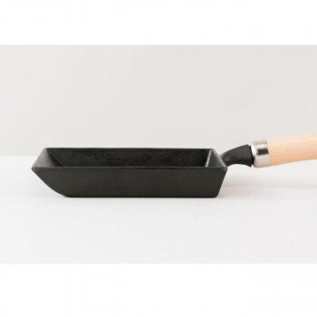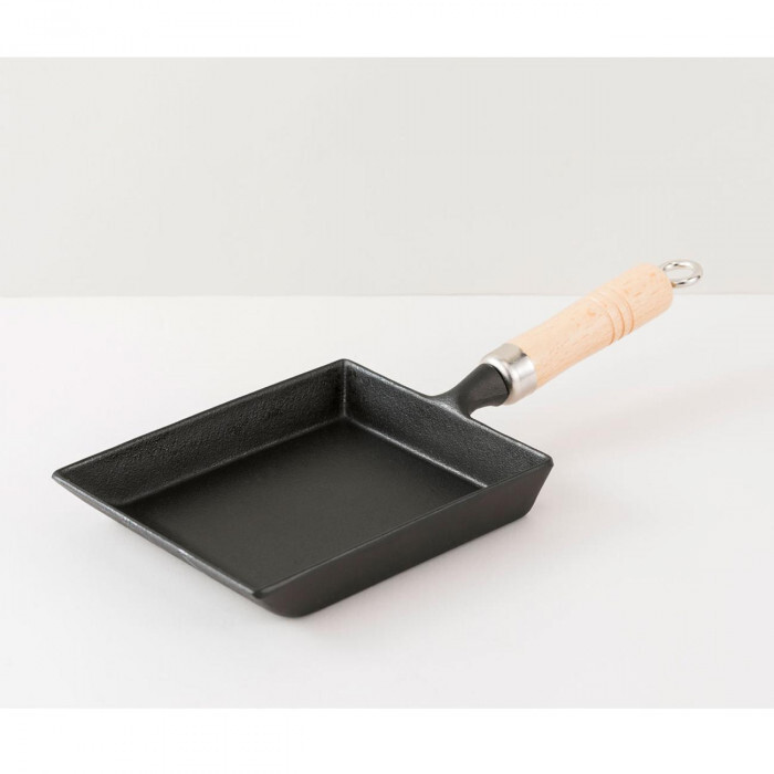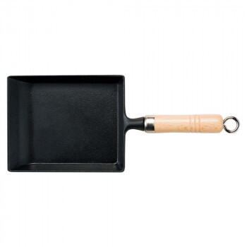 | 玉子焼がふんわりと焼きあがります。木柄付きなので持ち手が熱くなりません。 |