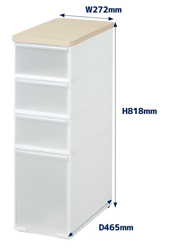 サイズ | 【外寸】(約)W272×D465×H818mm、【内寸/上から】1・2・3段目:(約)W213×D431×H120mm、4段目:(約)W213×D405×H308mm 個装サイズ:47×27×82cm |