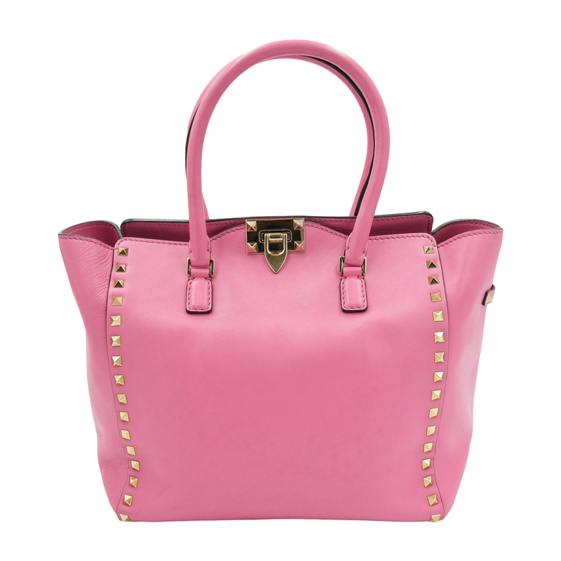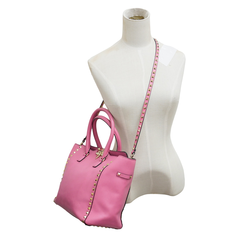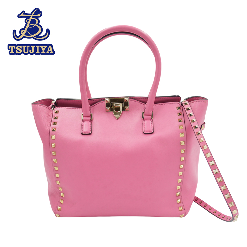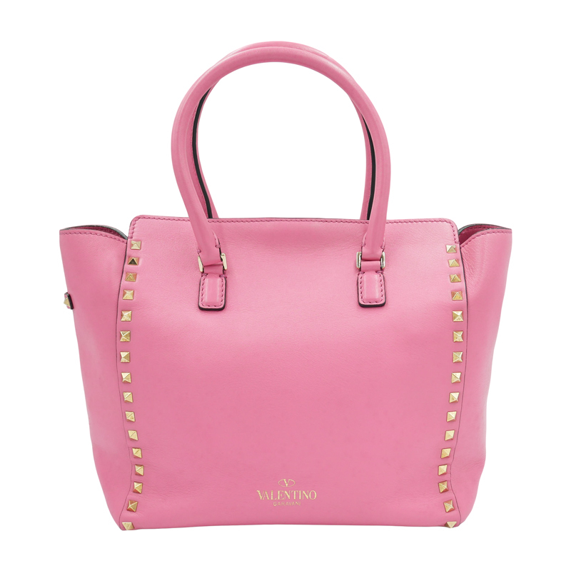 | VALENTINO GARAVANI ヴァレンティノカラヴァーニ スタッツトートバッグ レザー ピンク ゴールド金具 中古B【辻屋質店B3109】 | |