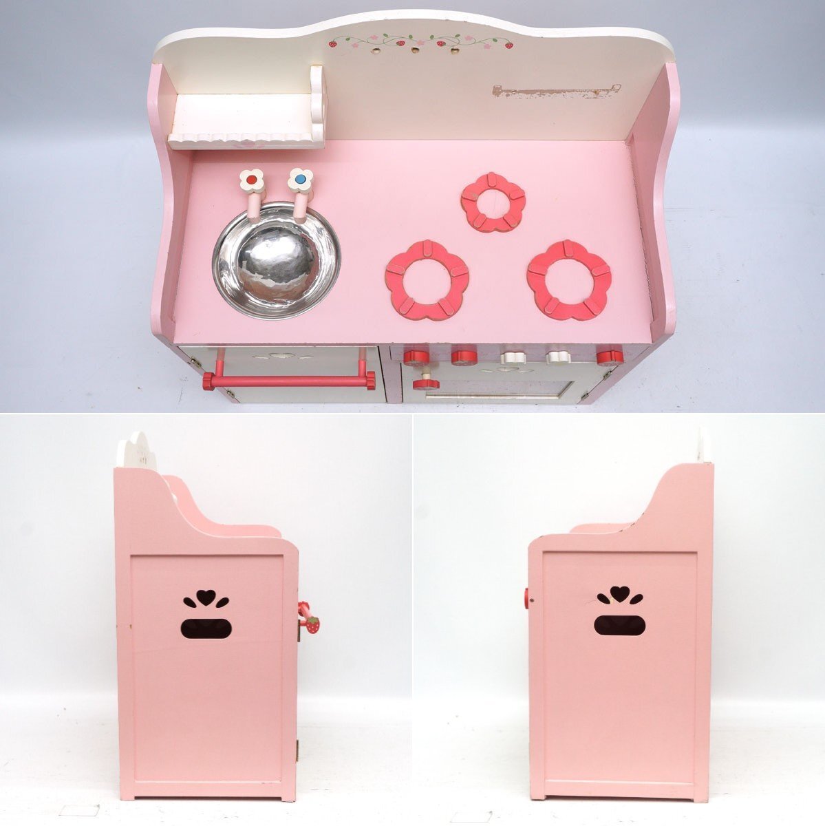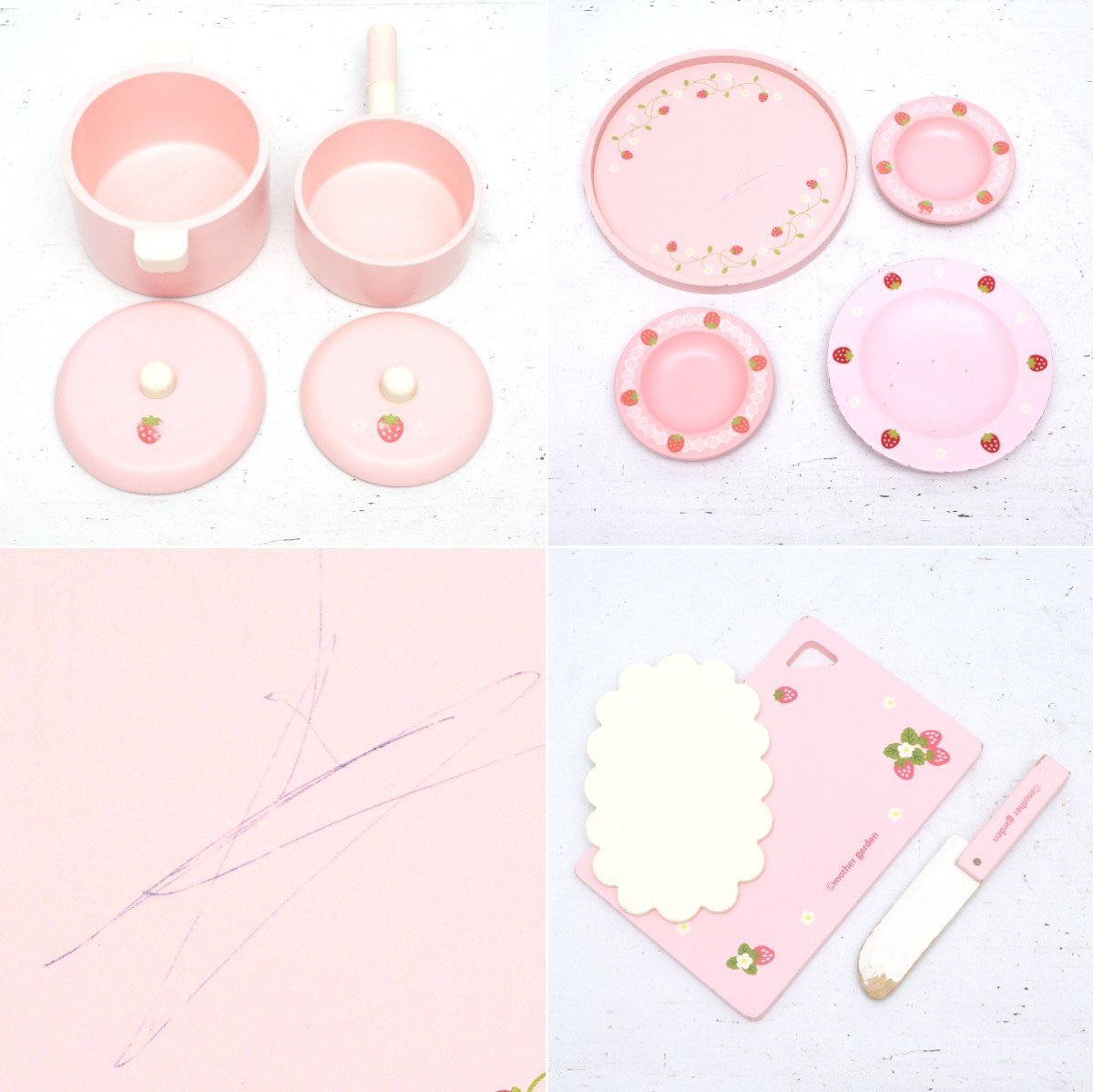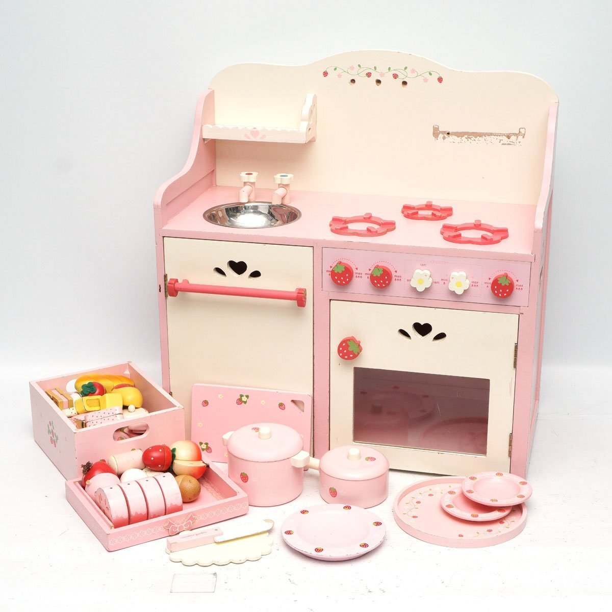 | マザーガーデン 野いちごキッチン おままごとセ 木製 ピンク 欠品 破損箇所あり |