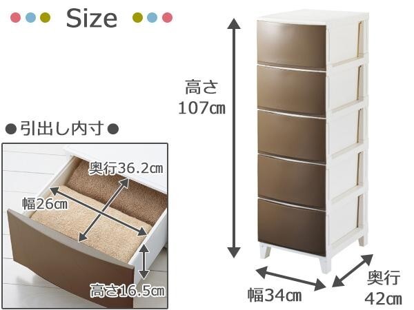 サイズ | 本体:約幅34×奥行42×高さ107cm(脚装着時)、引出し内寸:約幅26×奥行36.2×高さ16.5cm 個装サイズ:36×44×56cm |