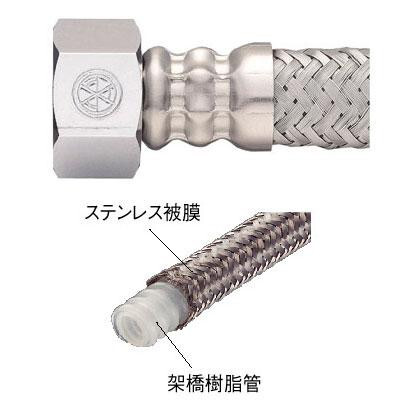 | 素材・材質 | 【内側】 ホース:スチレン系架橋樹脂 【外側】 SUS304網被膜 【その他】 パッキン:ノンアスベスト、ナット:黄銅 |