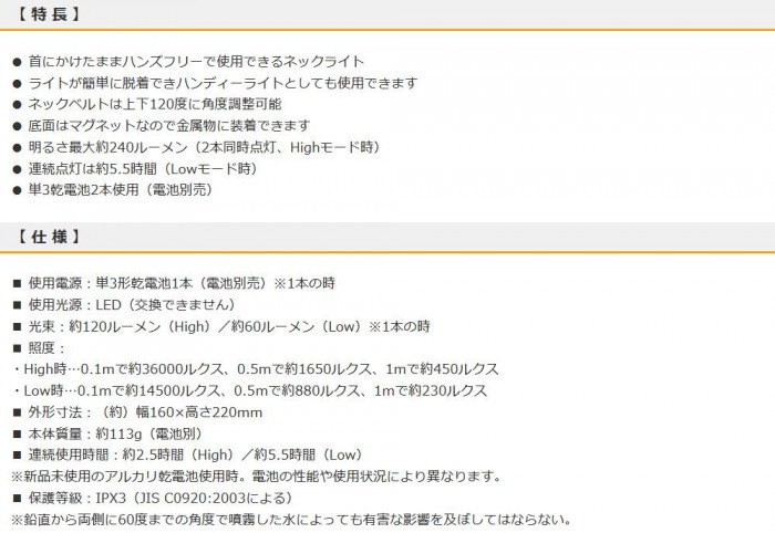 仕様 | 単3形乾電池1本(別売り)※1本の時 保証期間:1年間 |