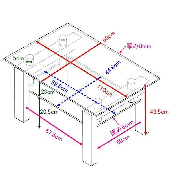 | 商品名 | ホワイト ガラステーブル 幅110 奥行60 |