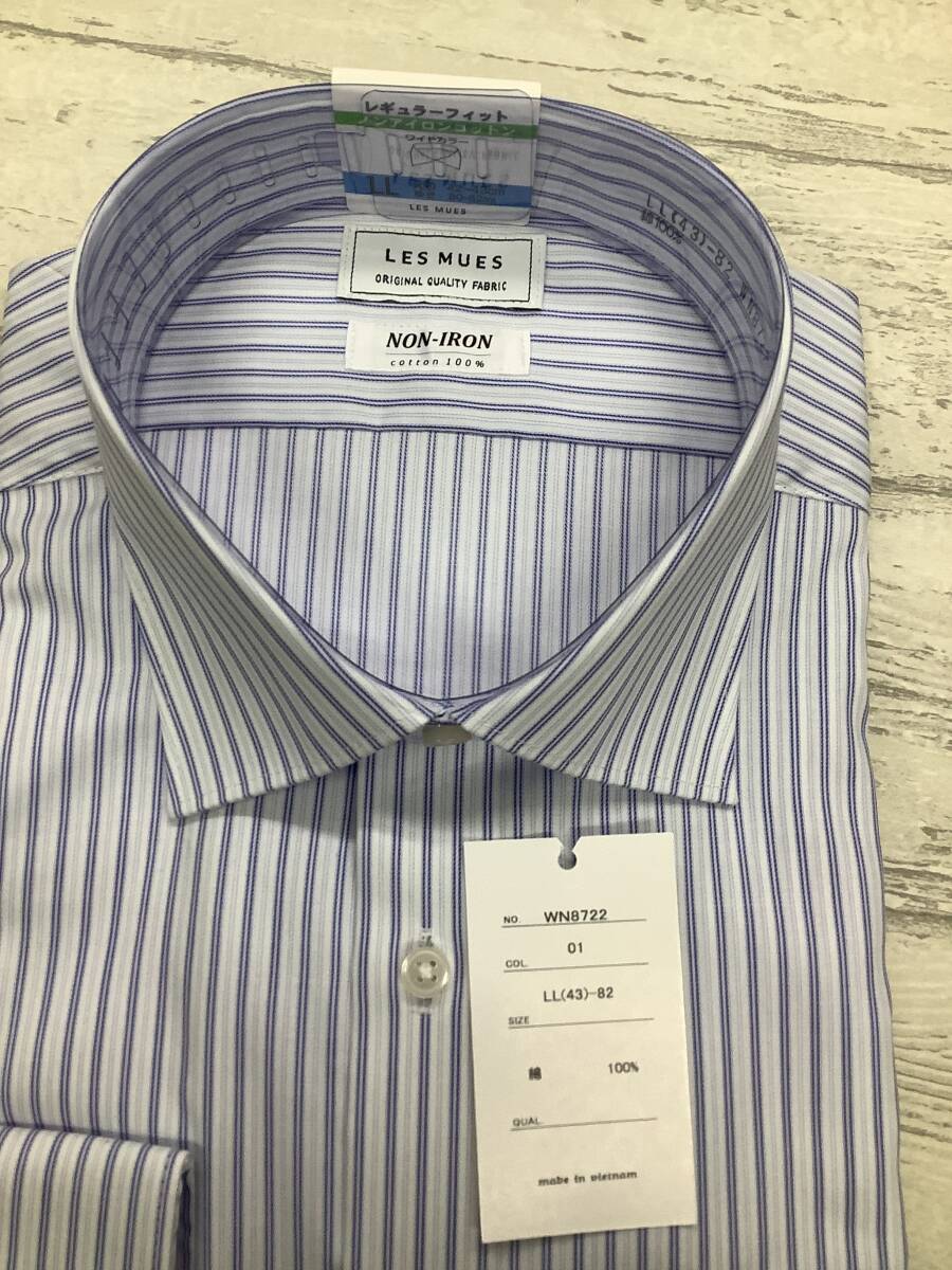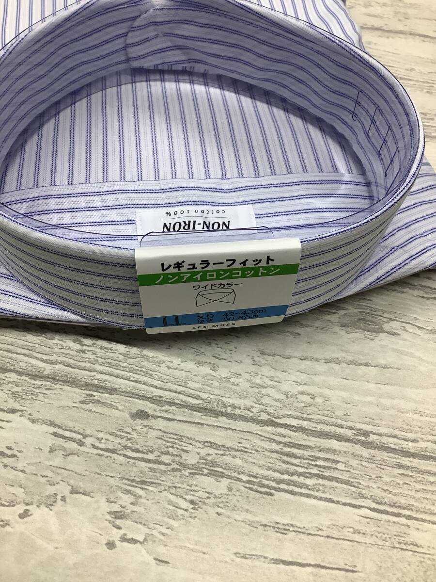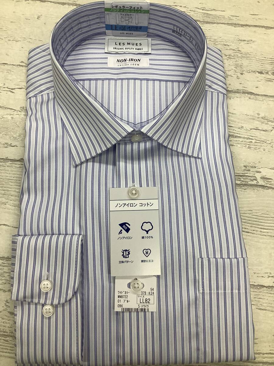 ★43-82★LLサイズ 定価4,990円の品★綿100% ワイドカラー★ノンアイロンコットン ブルーラインストライプ柄